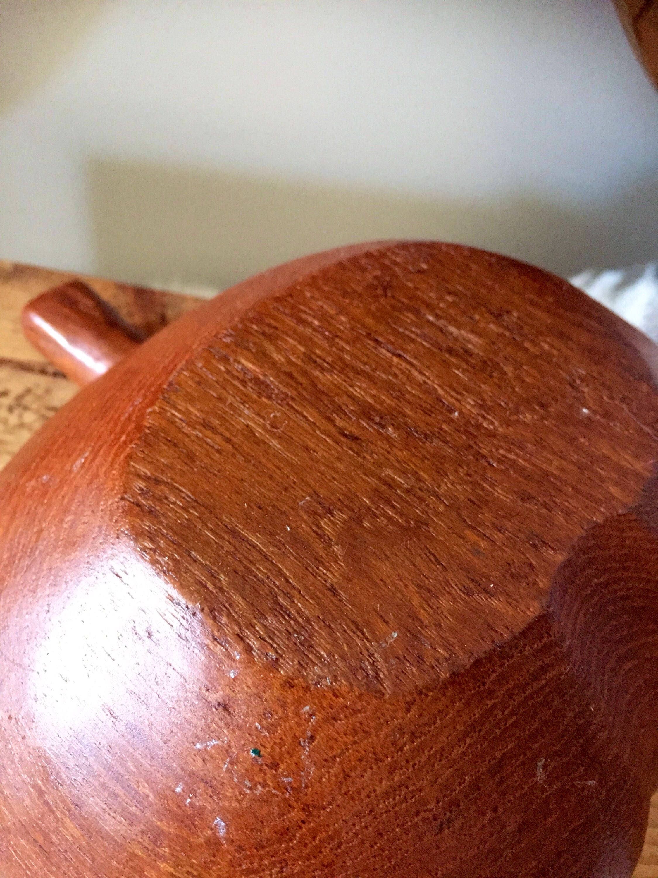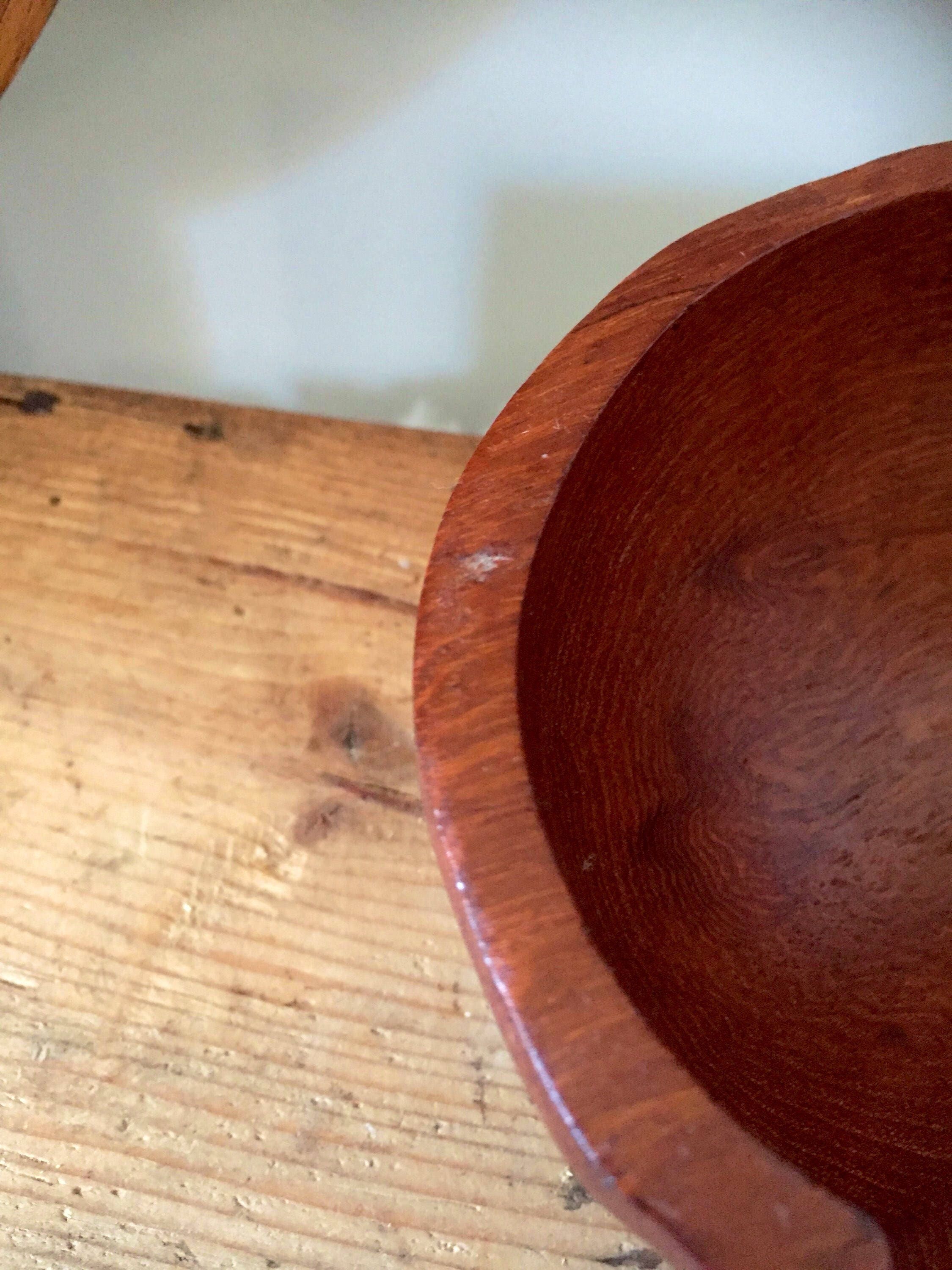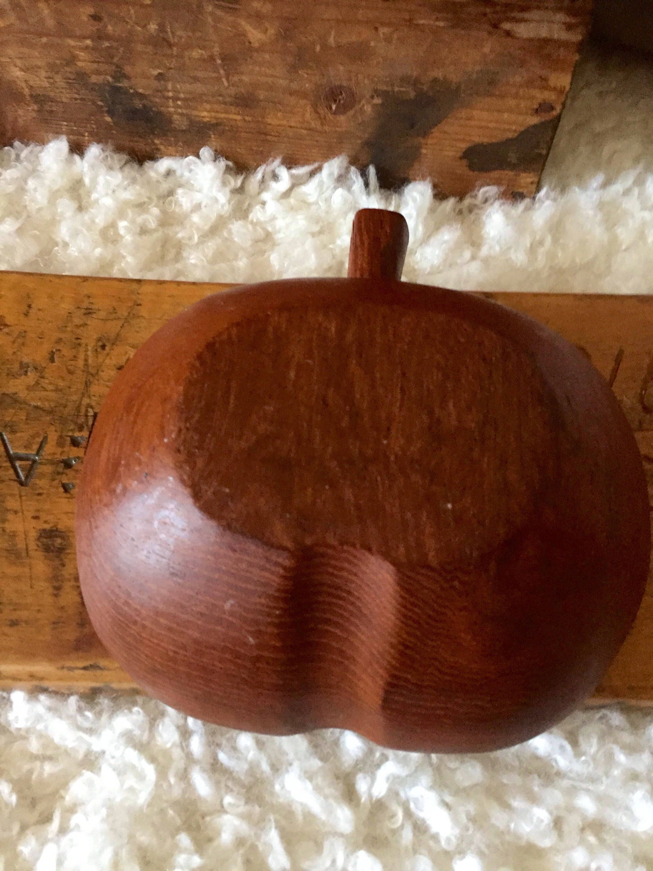This is a vintage handmade wooden bowl Shaped as an apple.