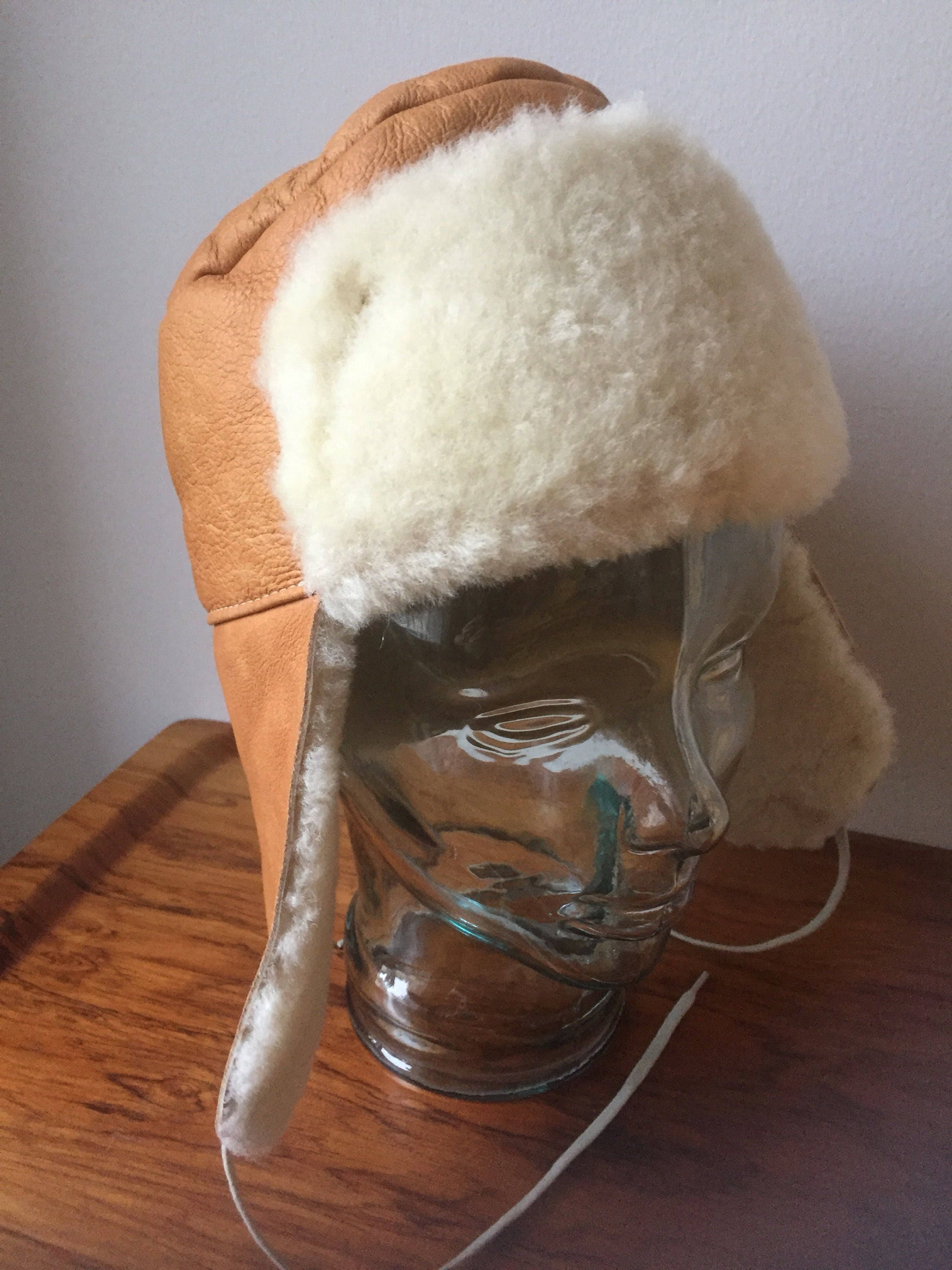 This is a small vintage trapper hat /sheepskin /lambskin muffler hat from the 1970s it has tie strings to tie up the ear covers. Perfect for a kid or an adult with a smaller head.
