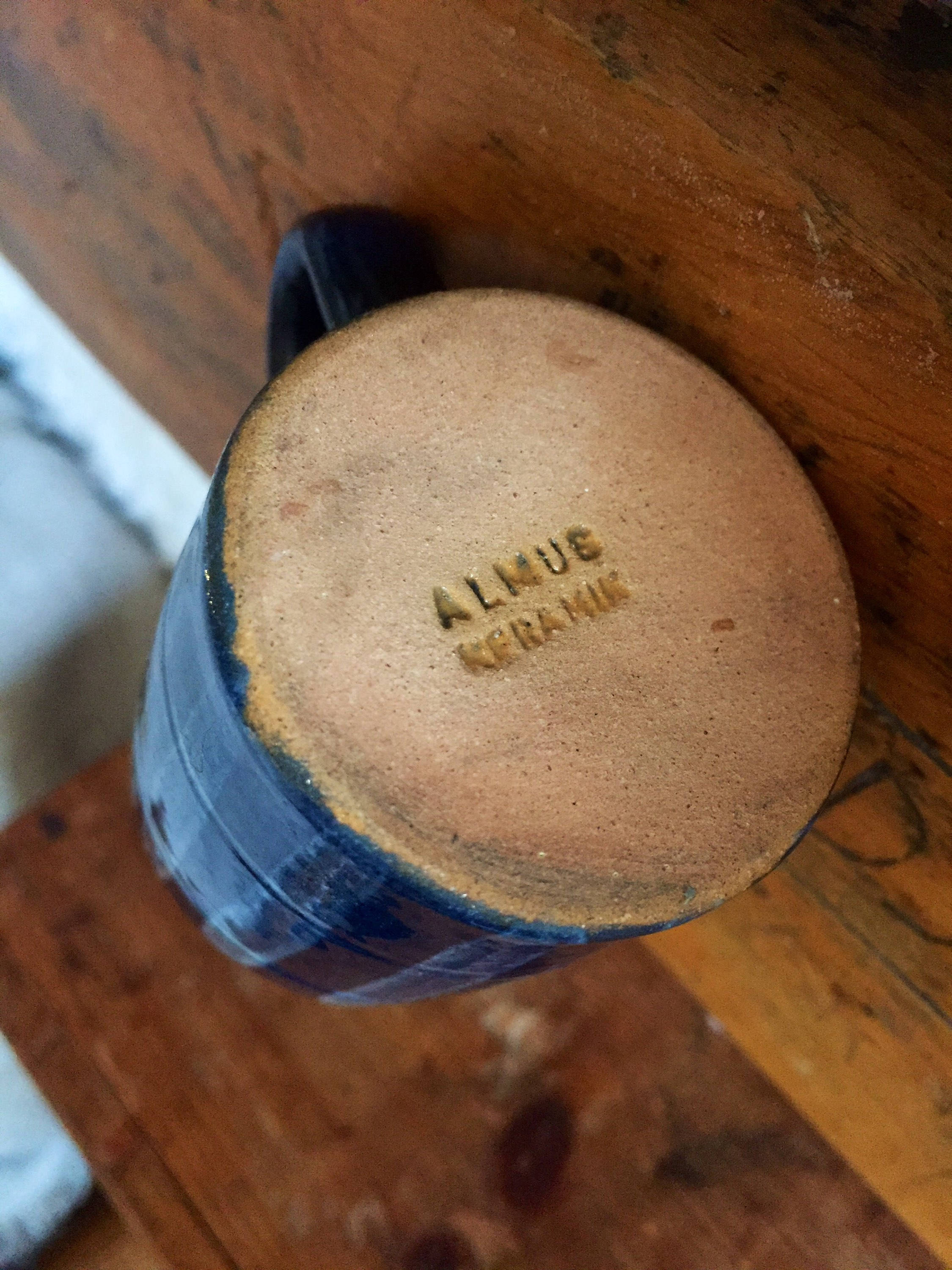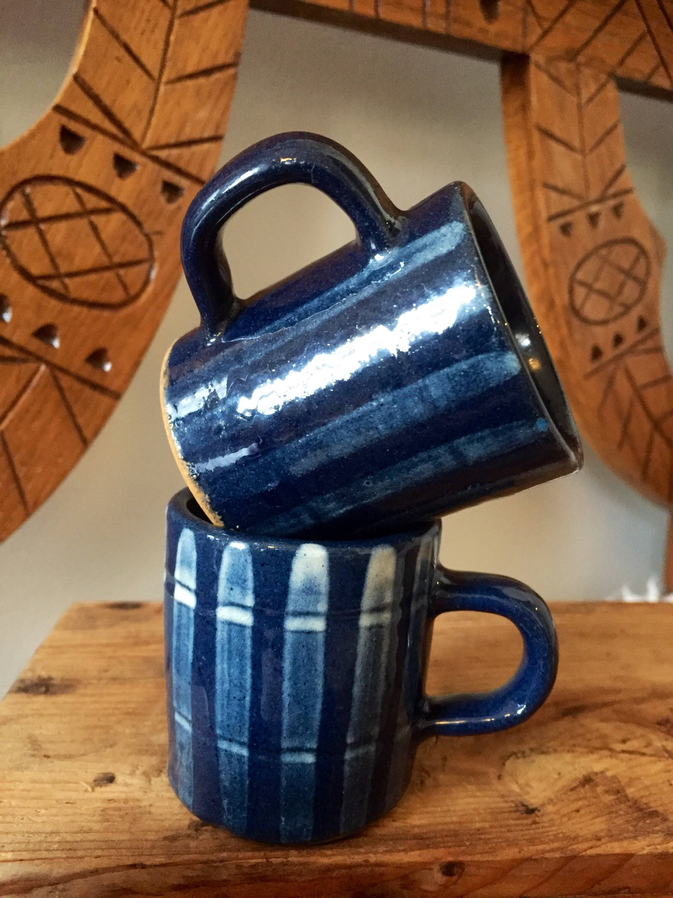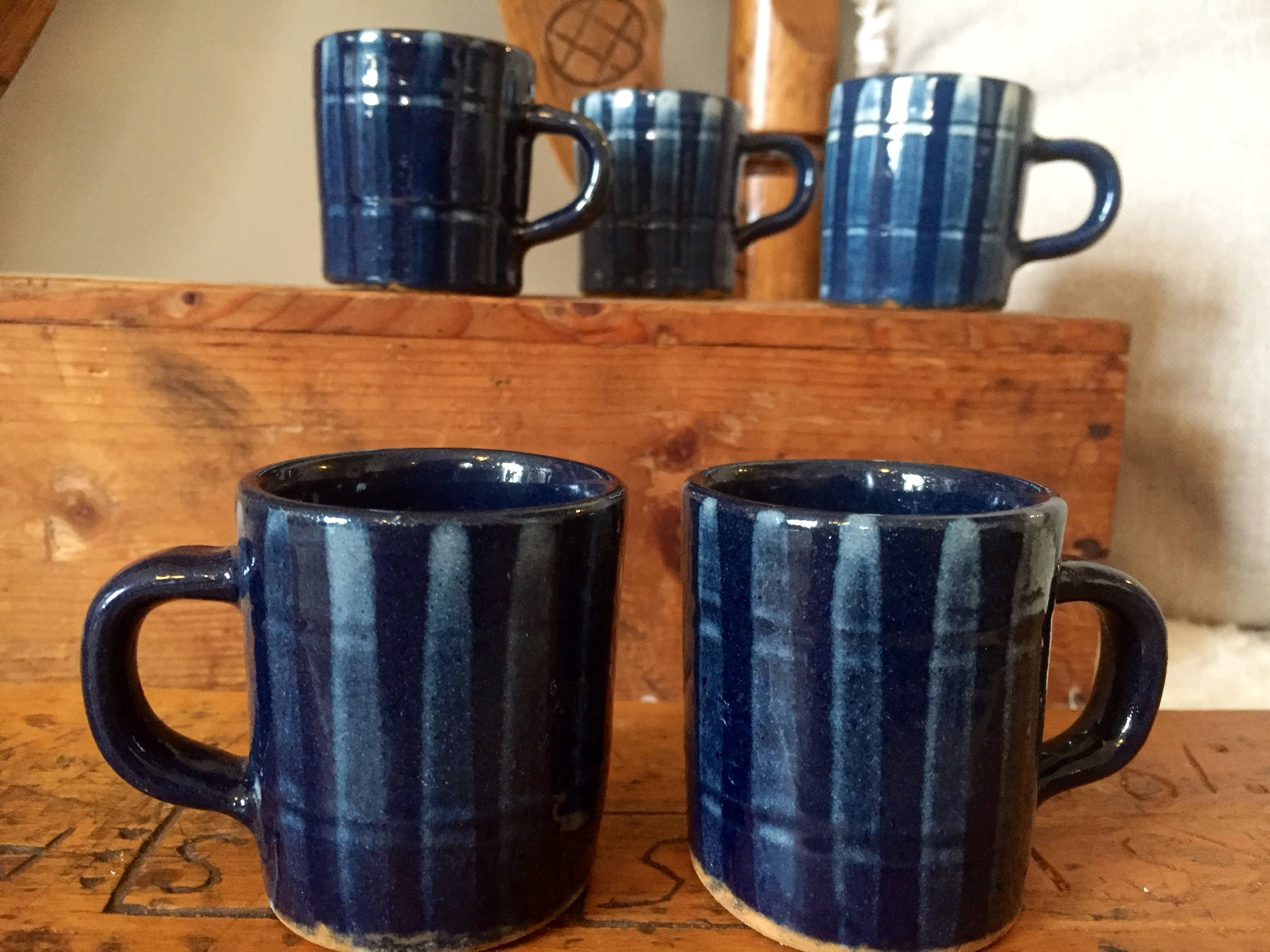 This is a set of older 5 Danish pottery cups from the Almus company of Denmark. They are from the 1930s