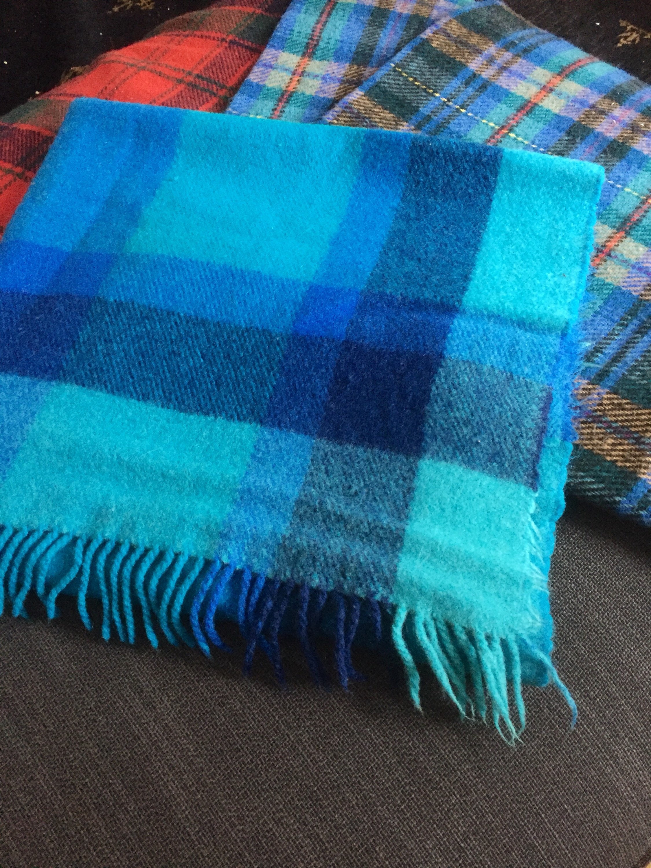 This is a Swedish classic wool throw from the 60's. The plaid is woven from 100% wool and is warm and beautiful. Warm up any interior with the deep blue tones color scheme.