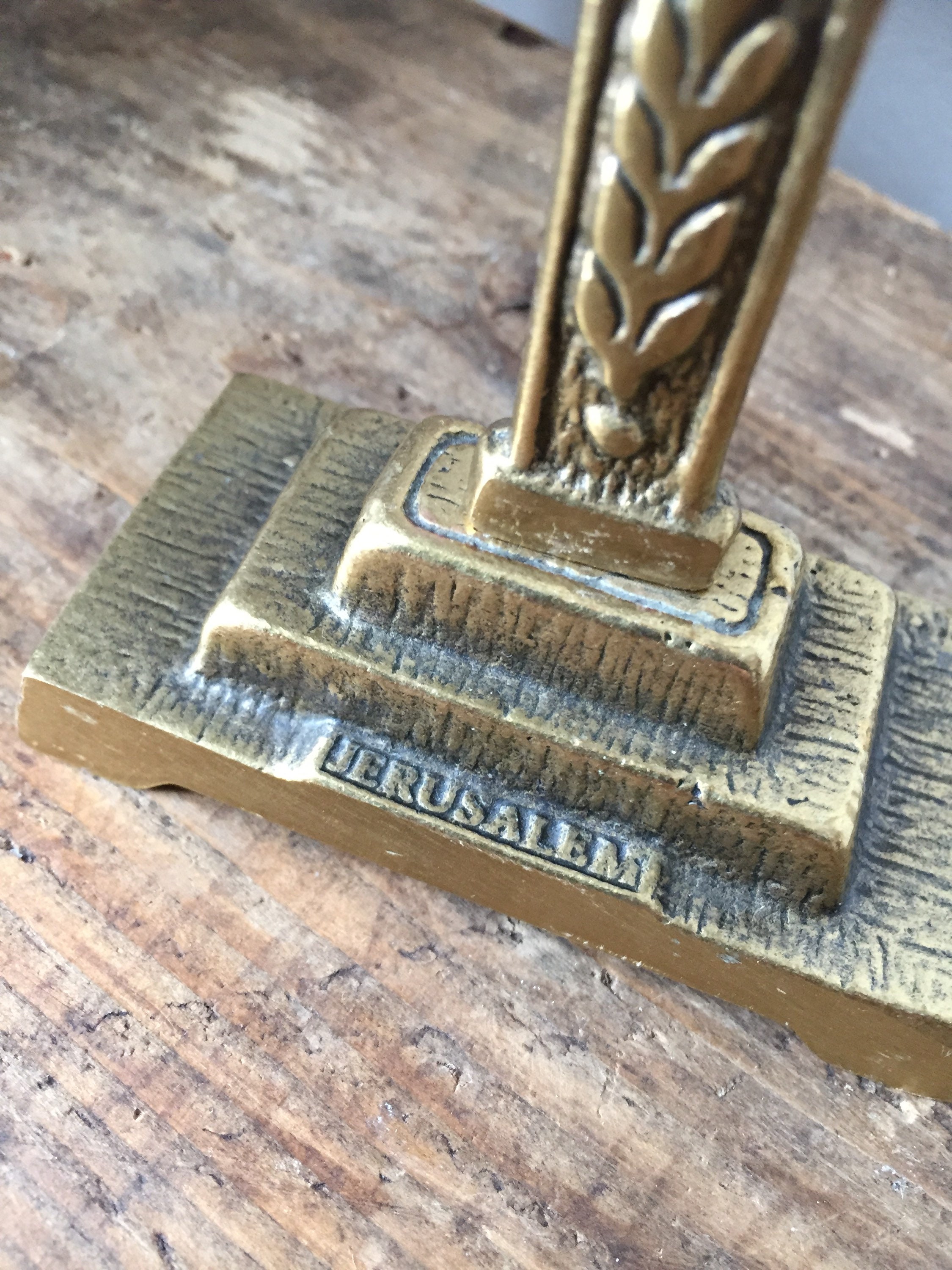 Give this a place of honor in your home. It is made by the famous Hen Holon company in Israel. Stamped underneath and also Jerusalem on the front of the base. Holds smaller candles.