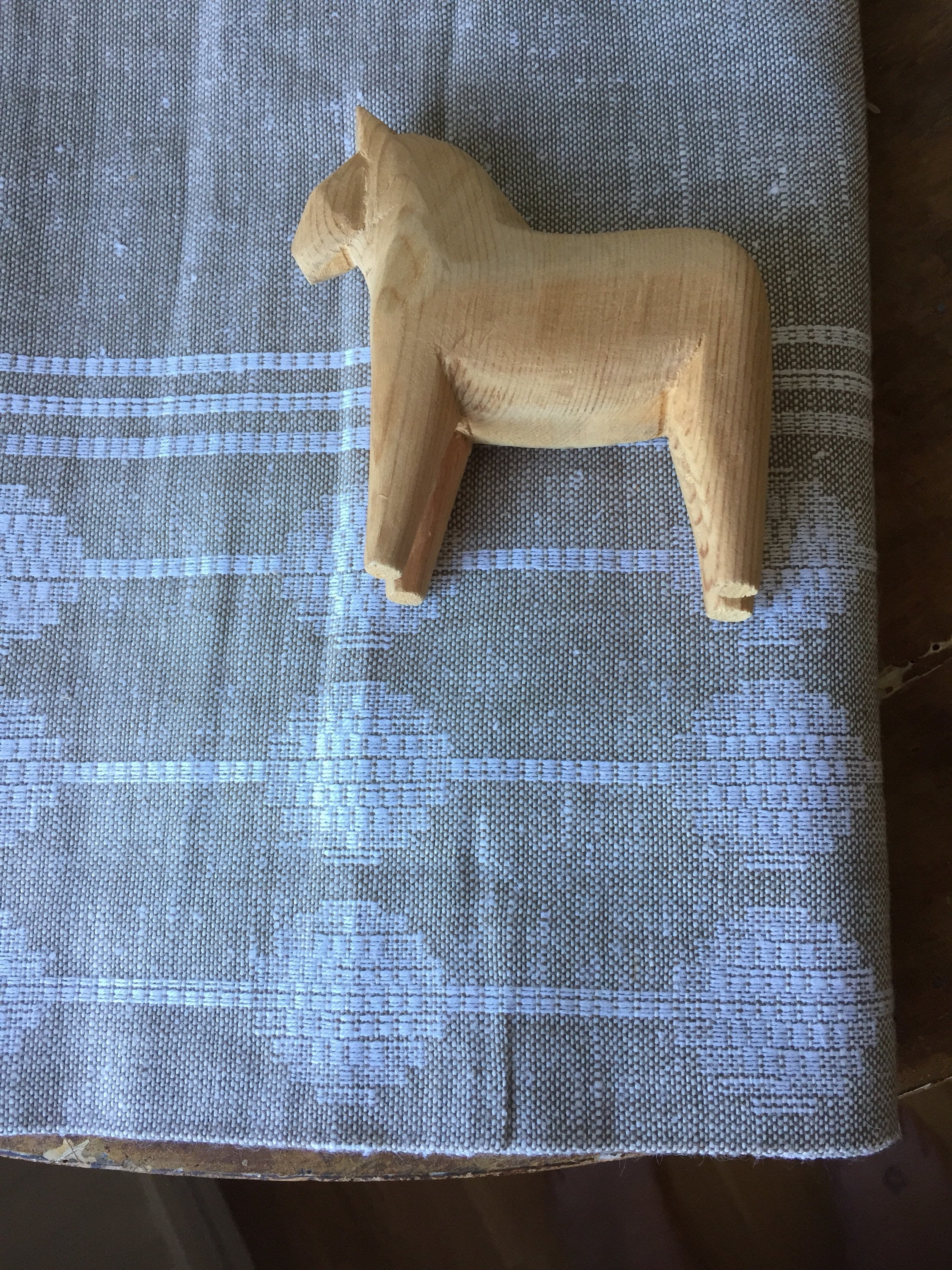 This is a vintage Scandinavian woven linen tablecloth in excellent condition. It has a lovely traditional Swedish pattern in white on a gray/ beige / greige background.