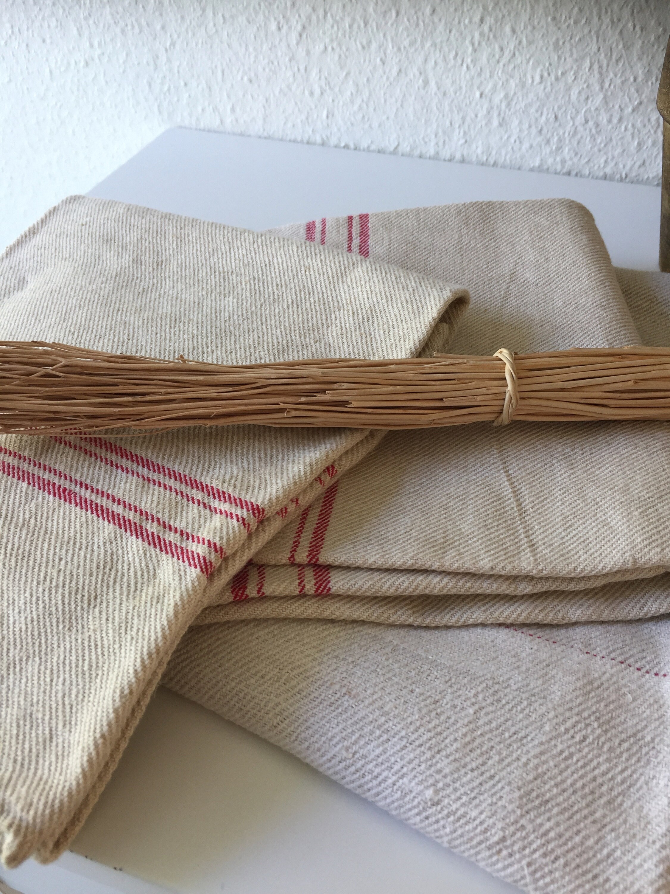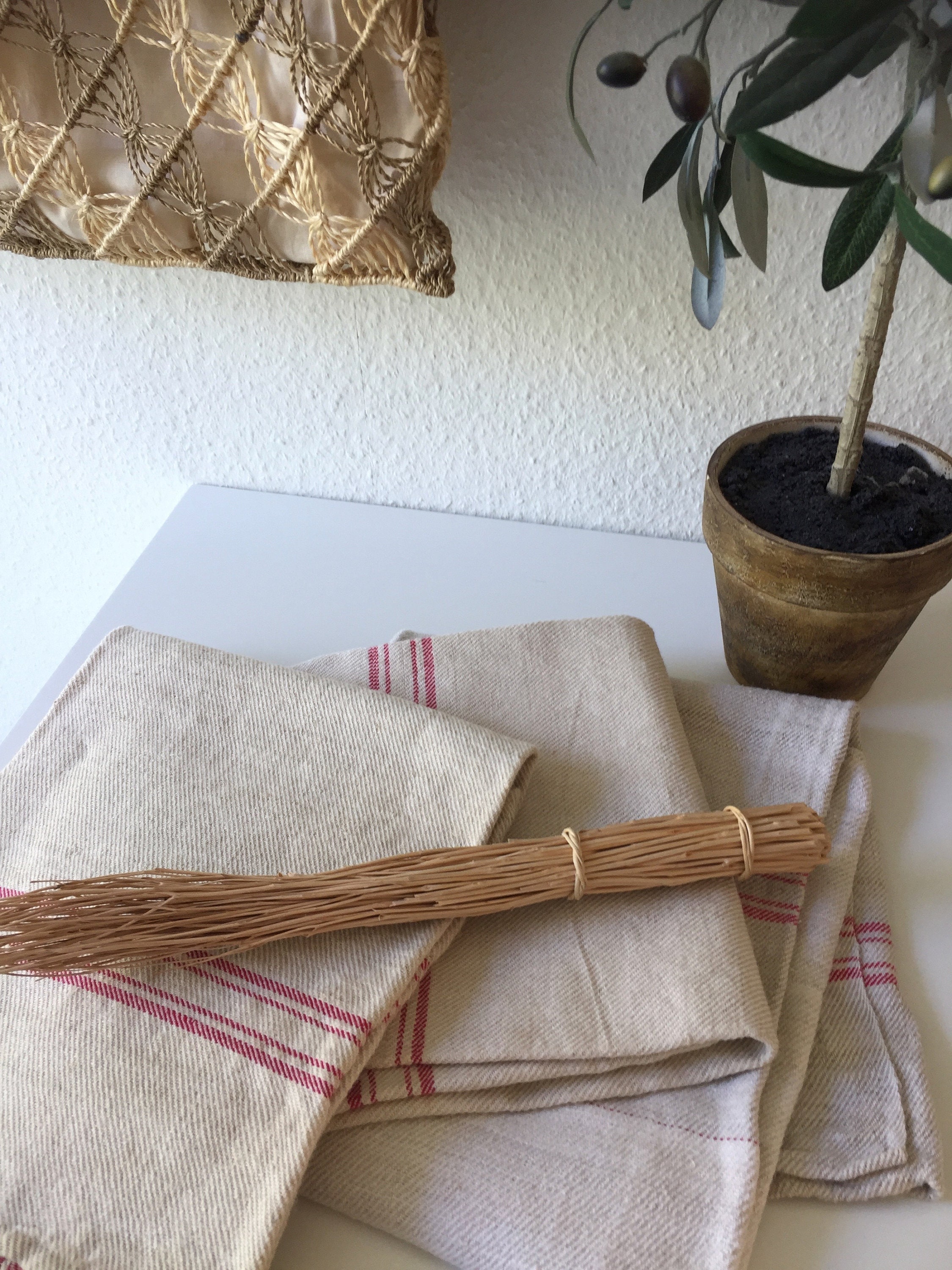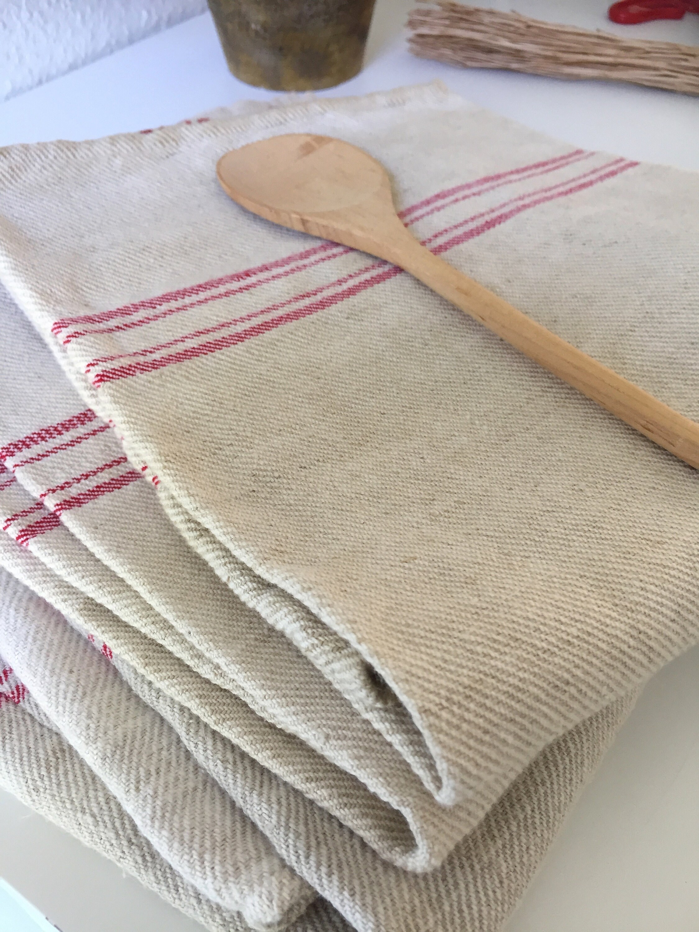 This is a set of 3 beautiful grain sack linen woven Scandinavian towels in beige with red details. The beige and red add a great pop of color to your space and give it that true vintage feel. It will look great in either the kitchen or as a hand towel for your guests.