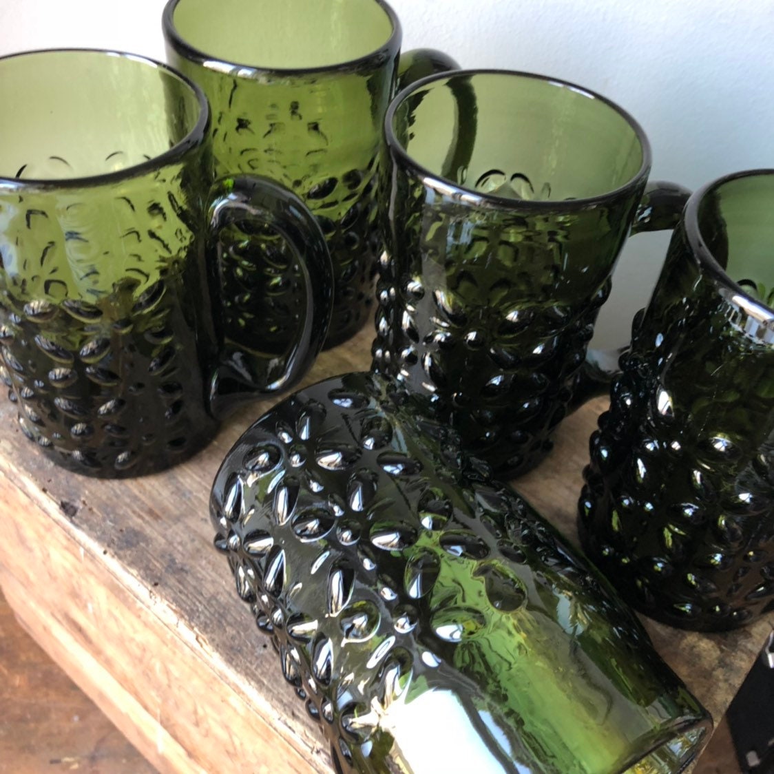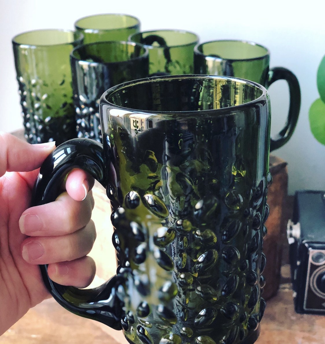 Swedish/ hand blown /green beer steins/1970s/set of 6 Skruf glassworks