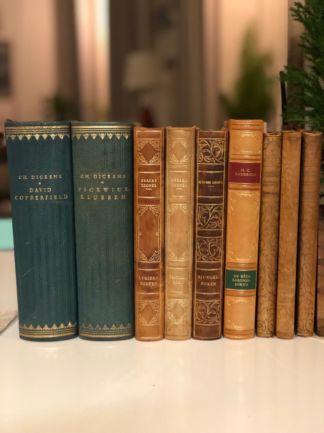 This is a vintage grouping of Diverse classics printed in Swedish. A beautiful collection of works 9 books total. The price is for all of the 9 books.