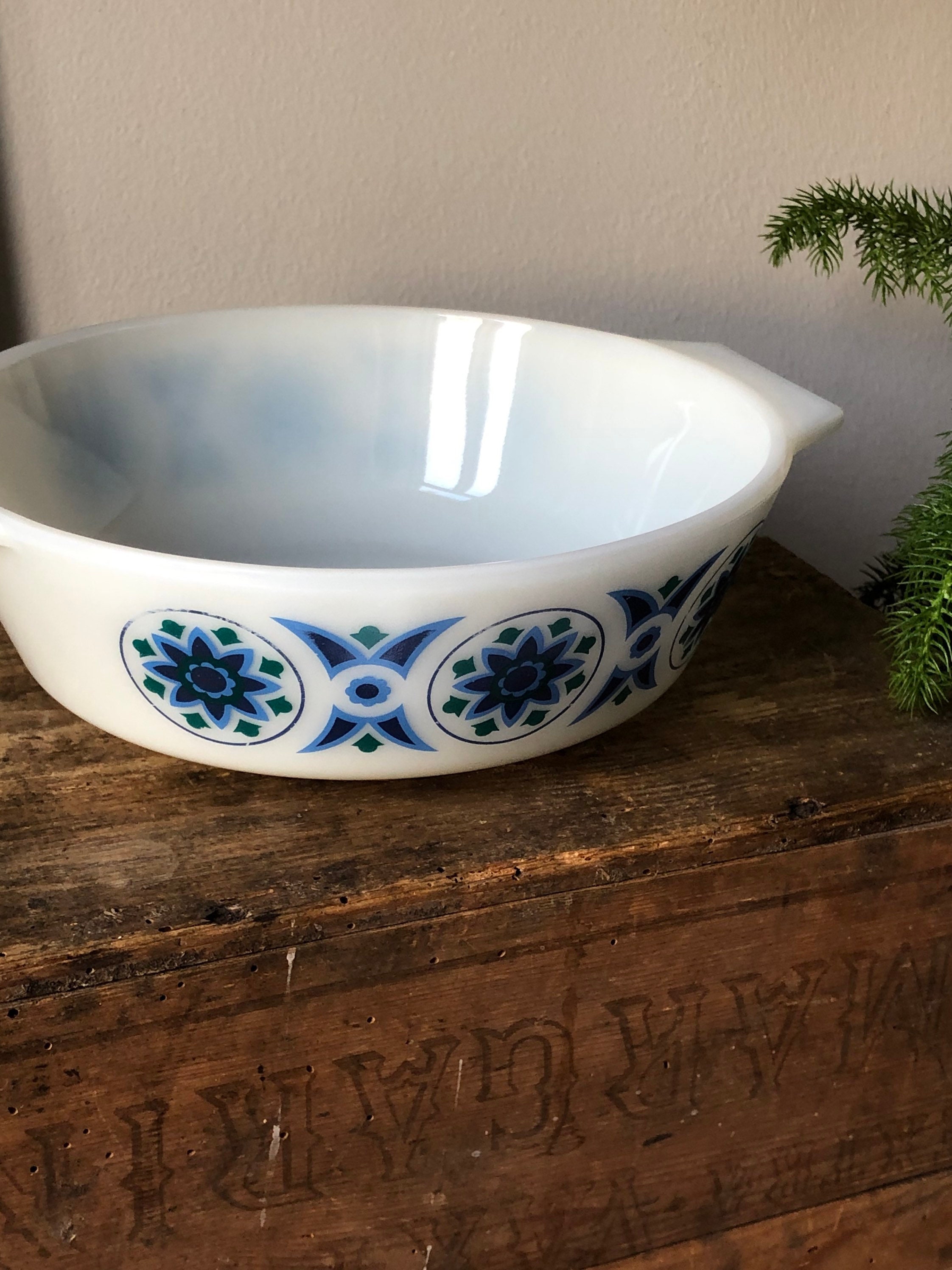 Lovely JAJ Pyrex casserole dish in the retro "Sea lily" pattern.