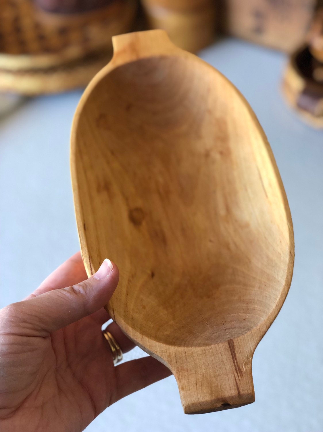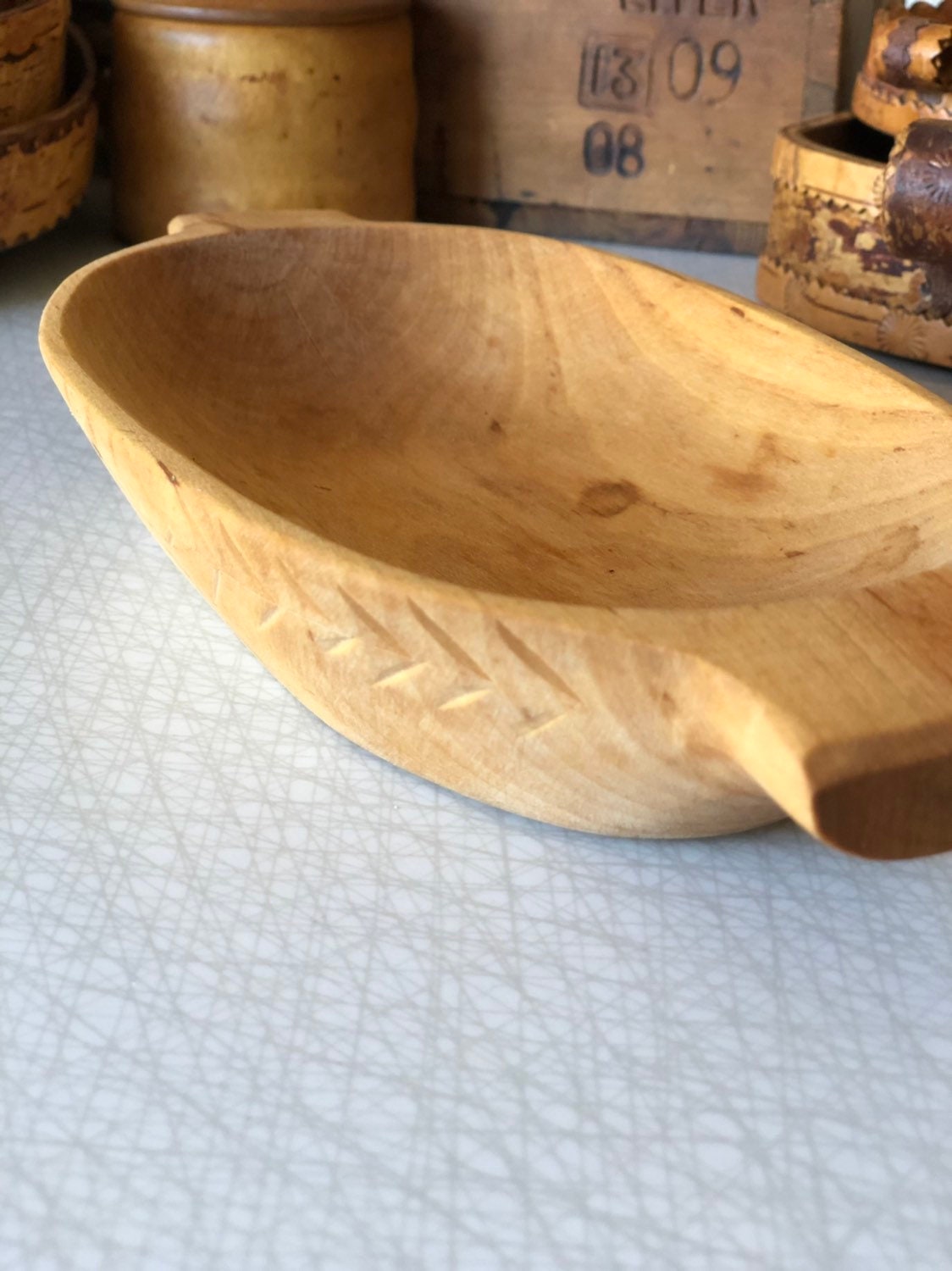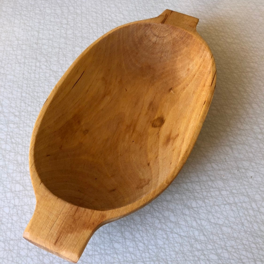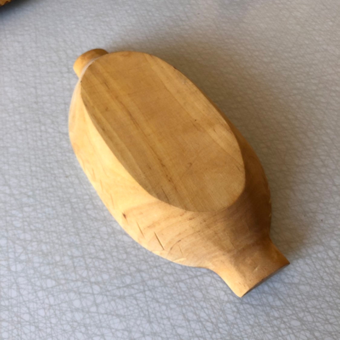 This wooden dough bowl is a vintage handicraft from Sweden.