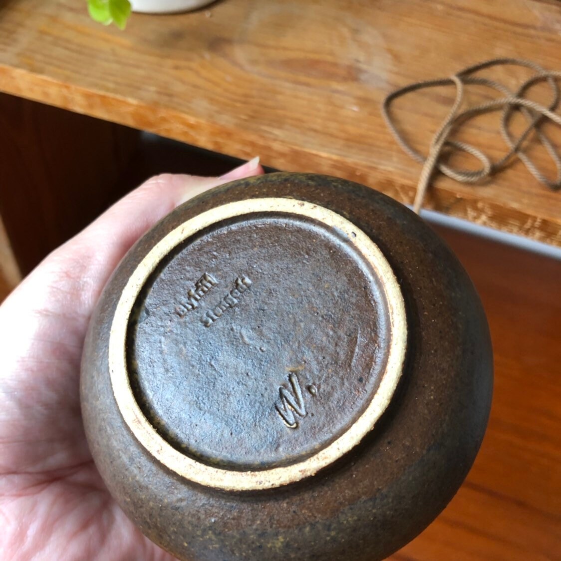This is a vintage studio pottery hanging candle votive holder signed by Bengt Wall for Wall Trosa Keramik in Sweden in the 1960s