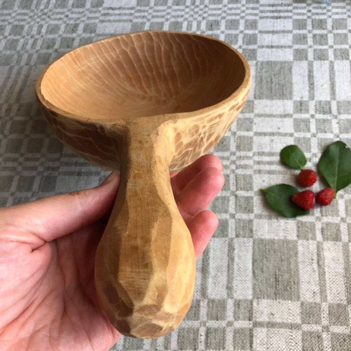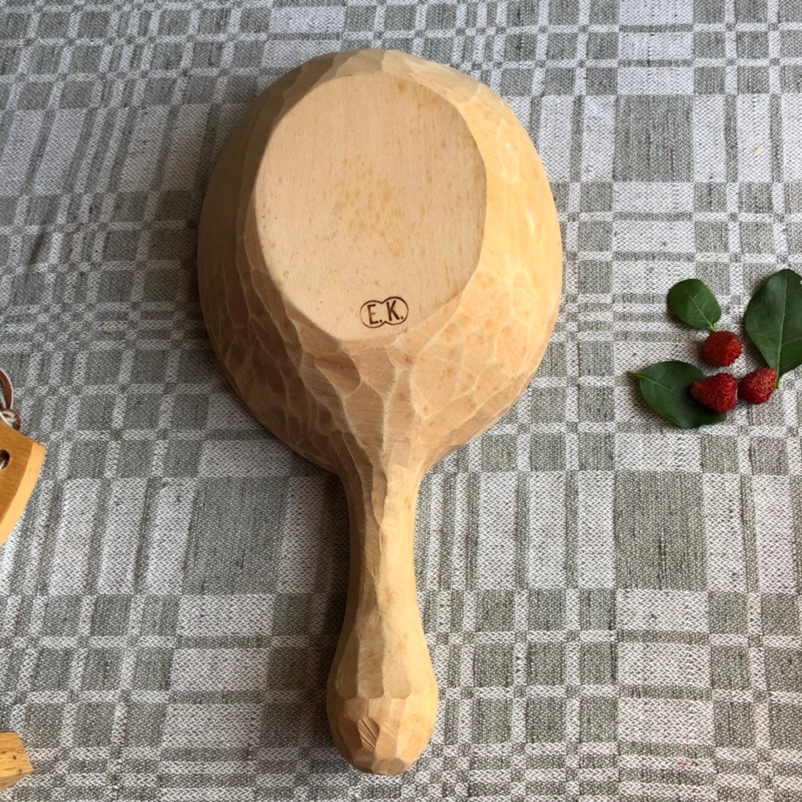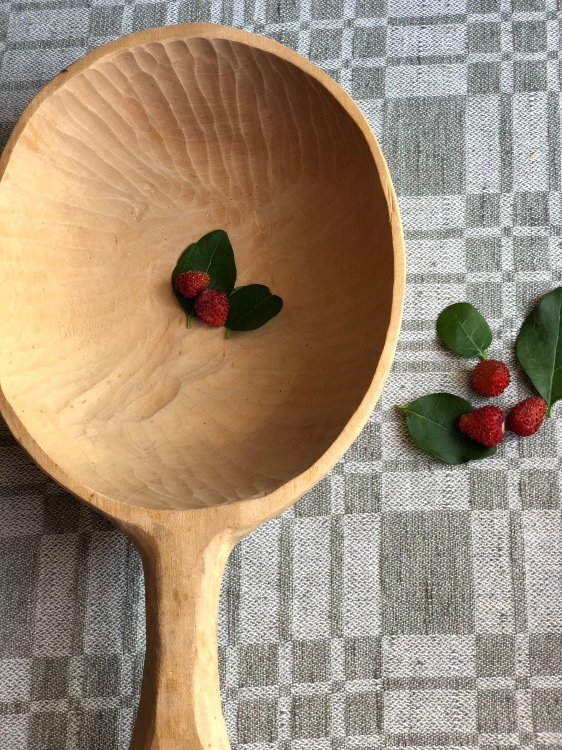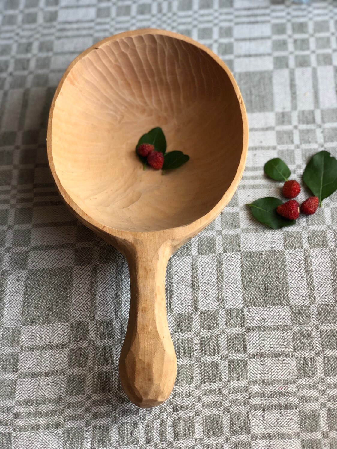 This a large beautiful Swedish hand carved wooden spoon / bowl with a handle.