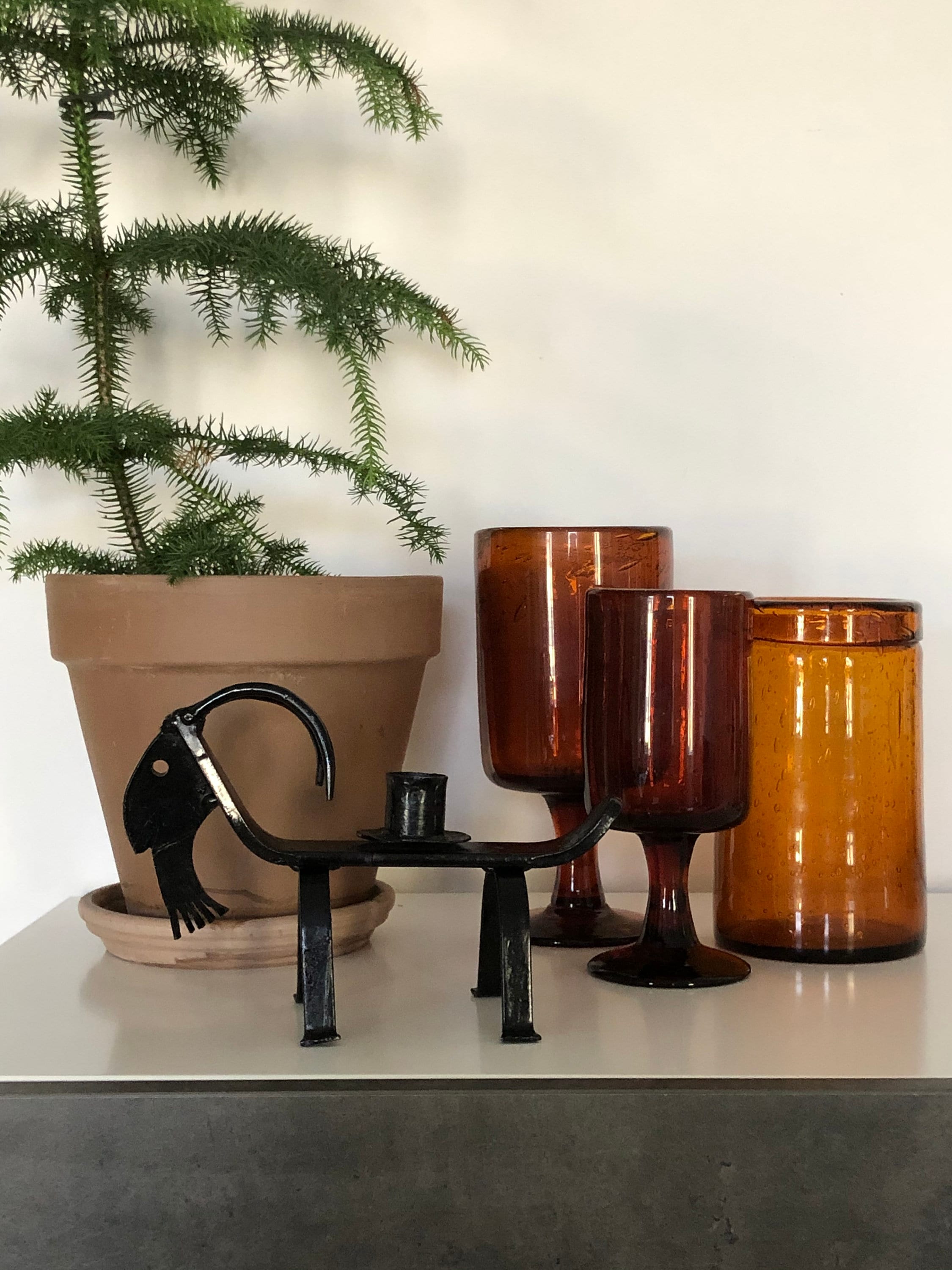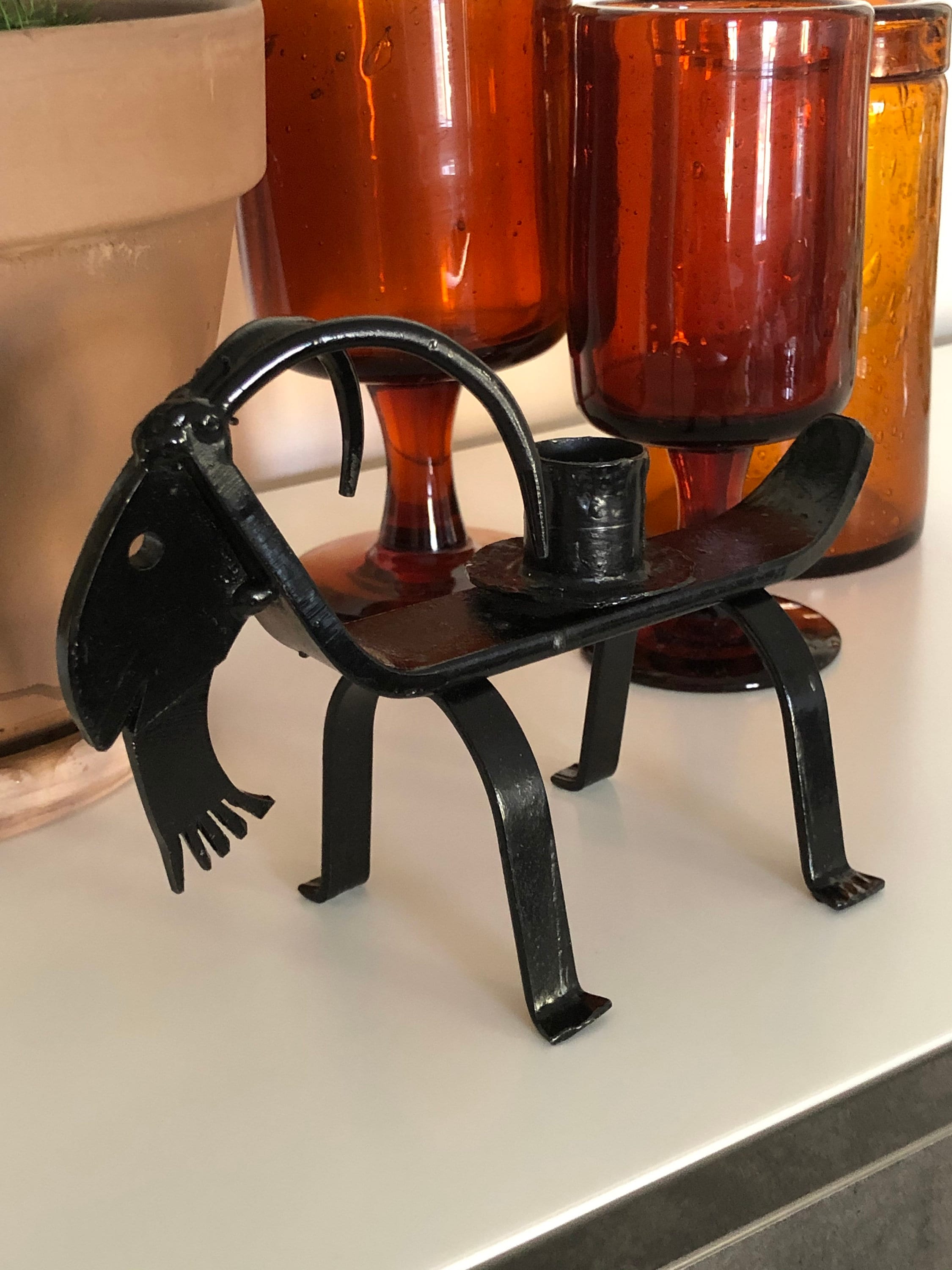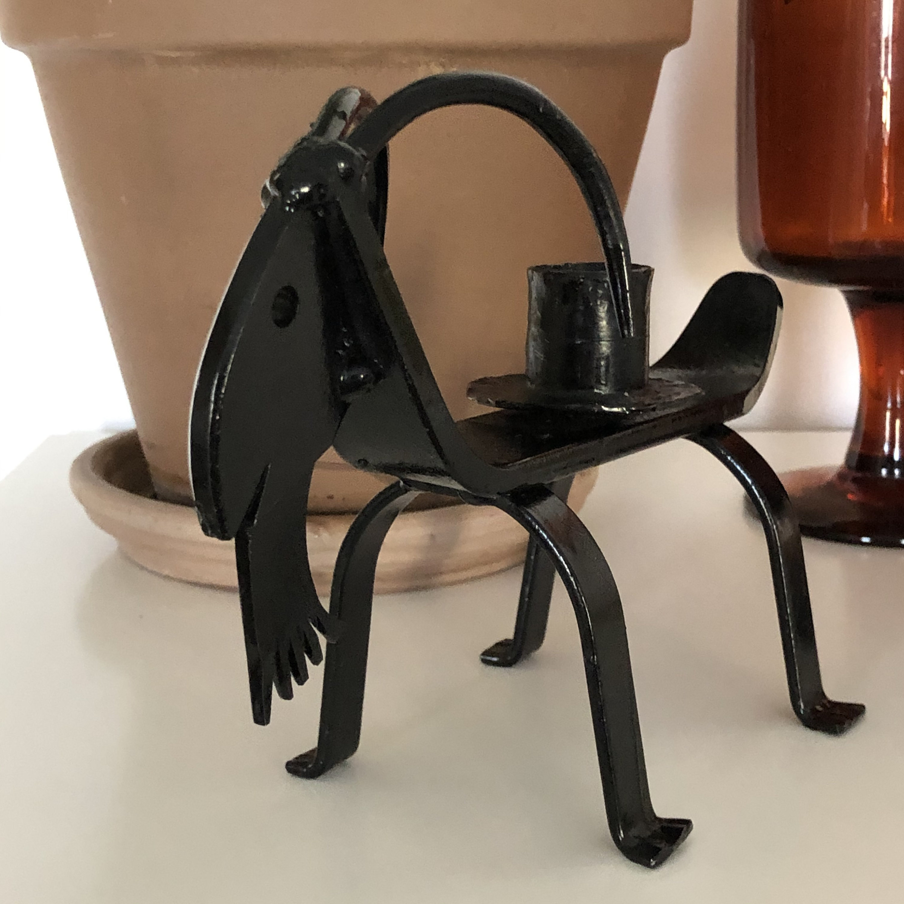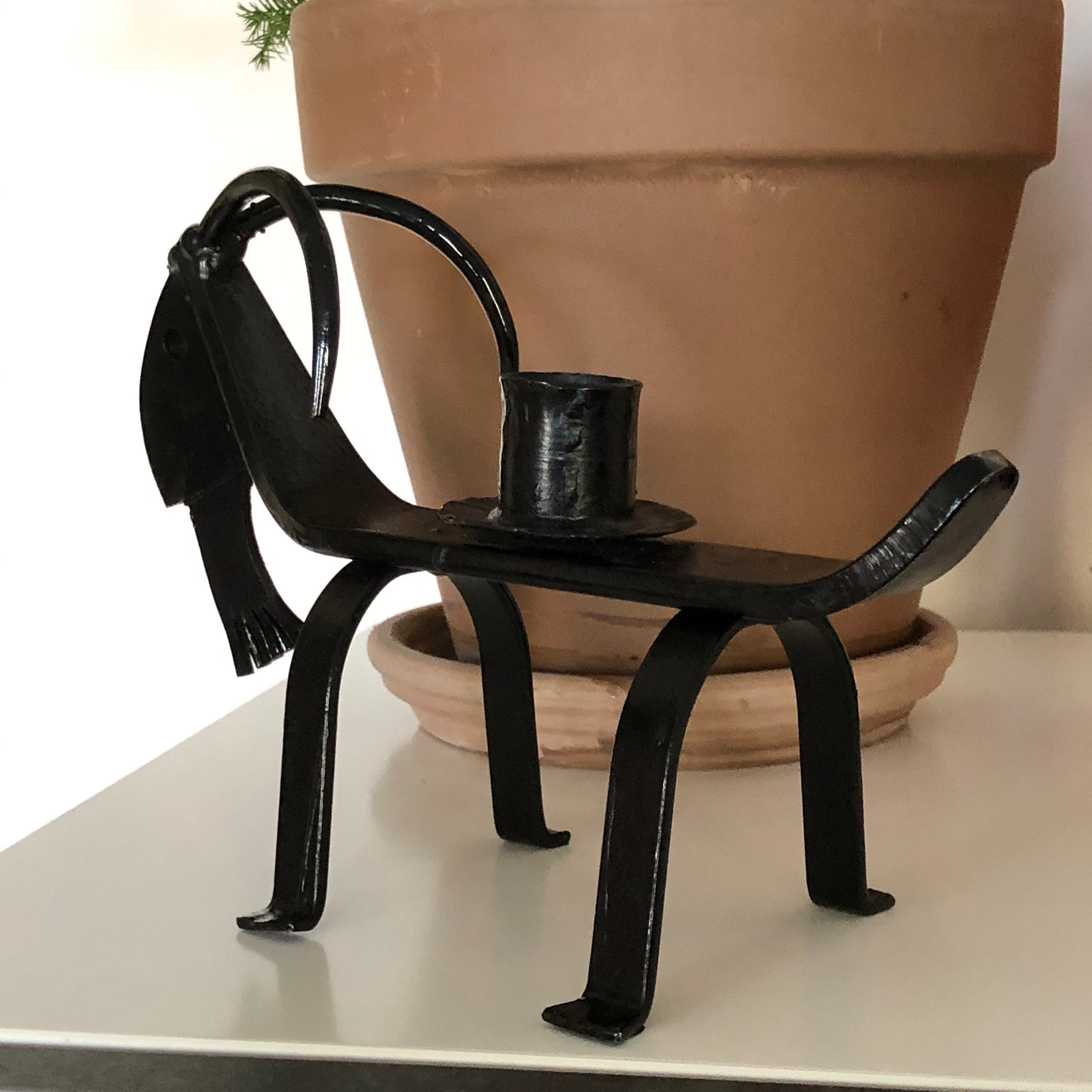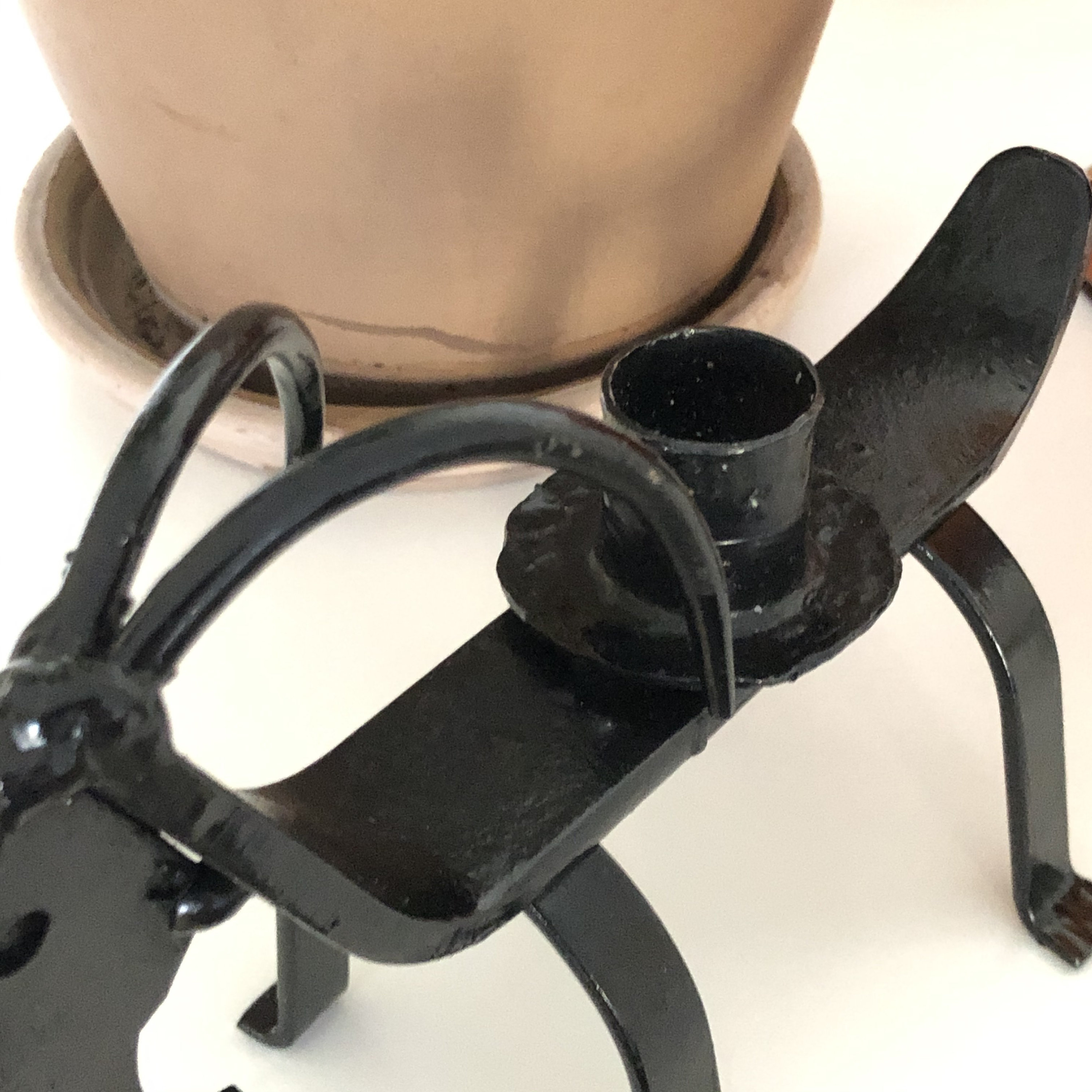 This is a well made heavy metal Viking style handmade in Sweden Christmas goat candle holder. They fit tapered candles and will make a great centerpiece on your table or even in an outdoor space.