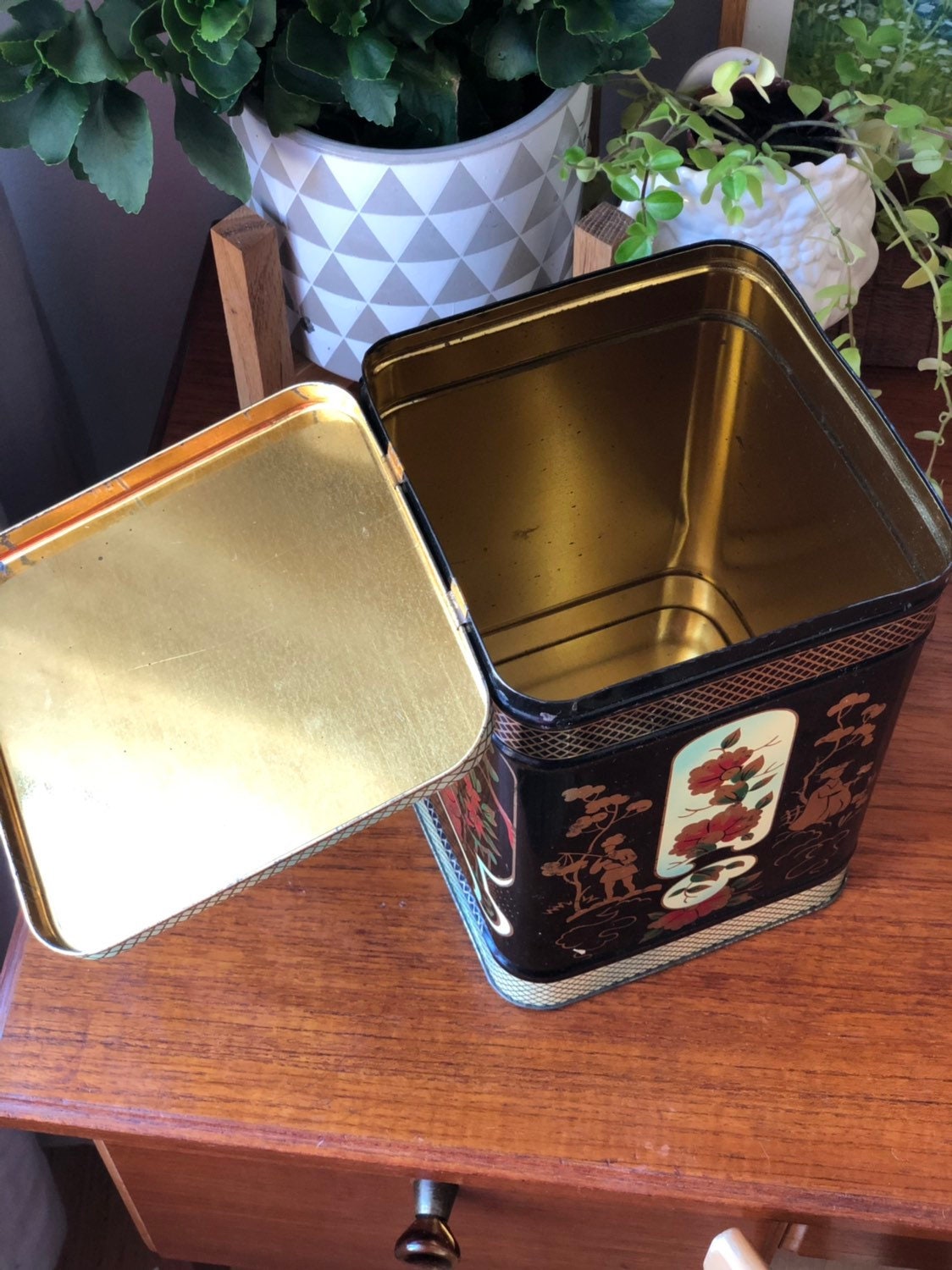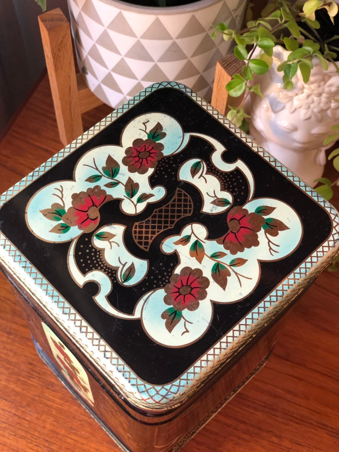 This tin can be used for storage as well as decoration and looks so inviting. The perfect present for the tea /antique tin lover in your life or perhaps you can surprise someone with your own goodies in this beautiful tin.