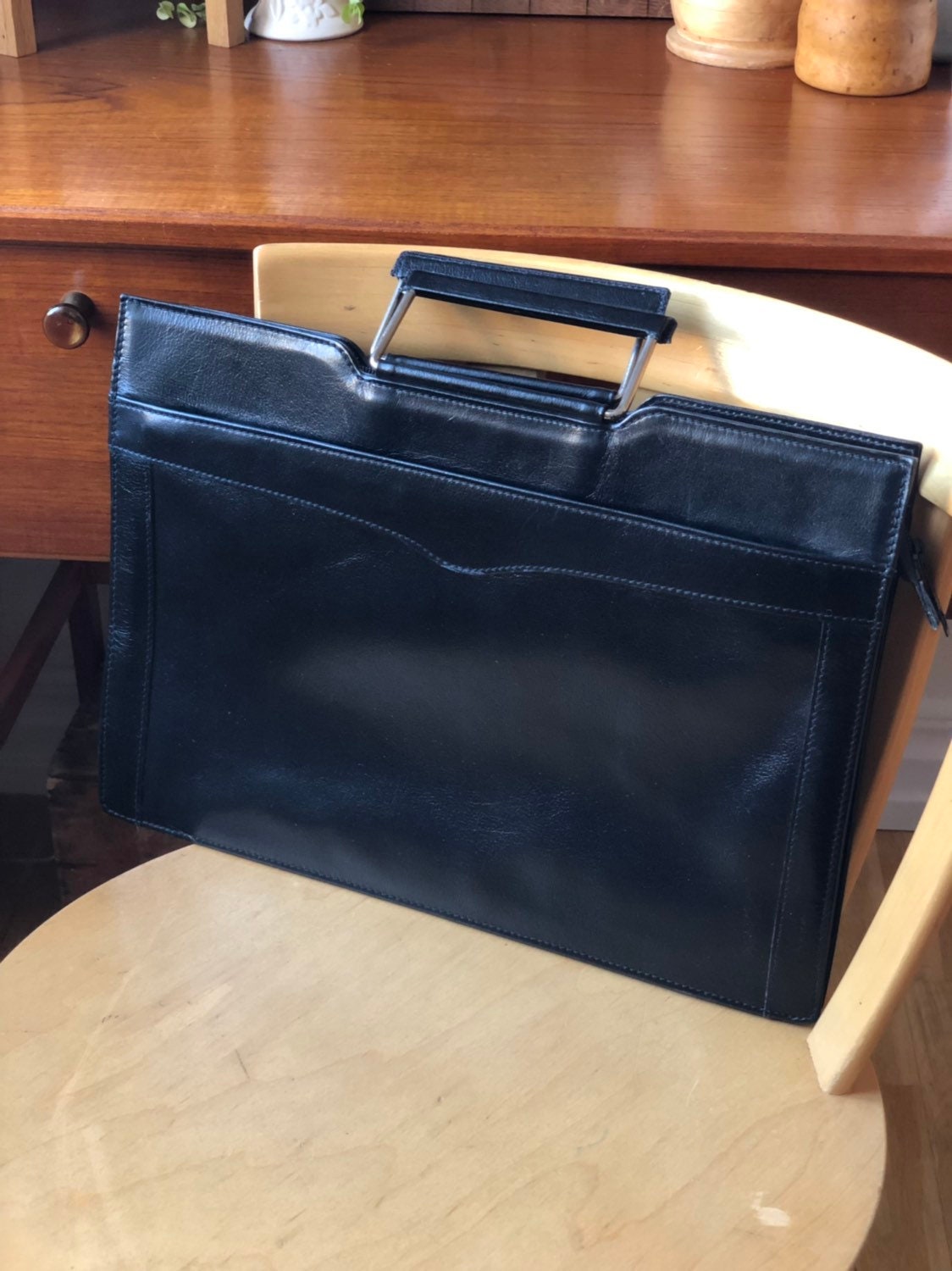 This is a vintage vegan leather / pleather portfolio briefcase right out of the 80s that can easily accommodate your laptop.