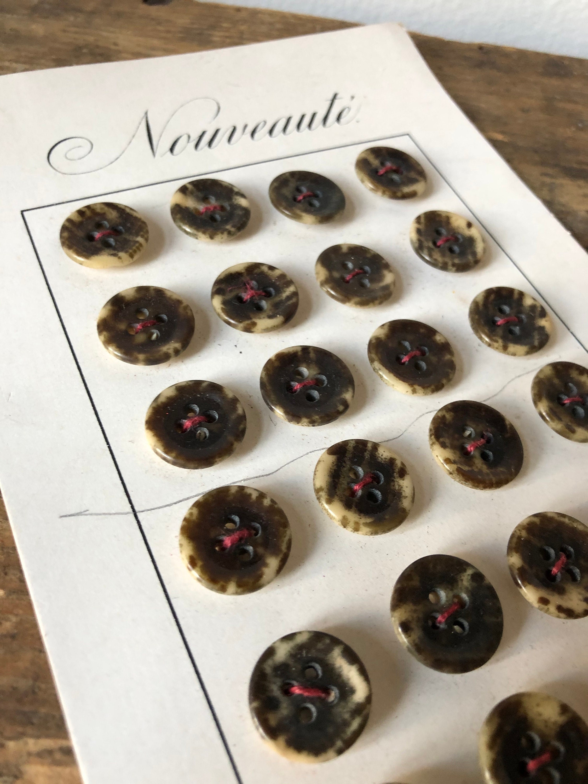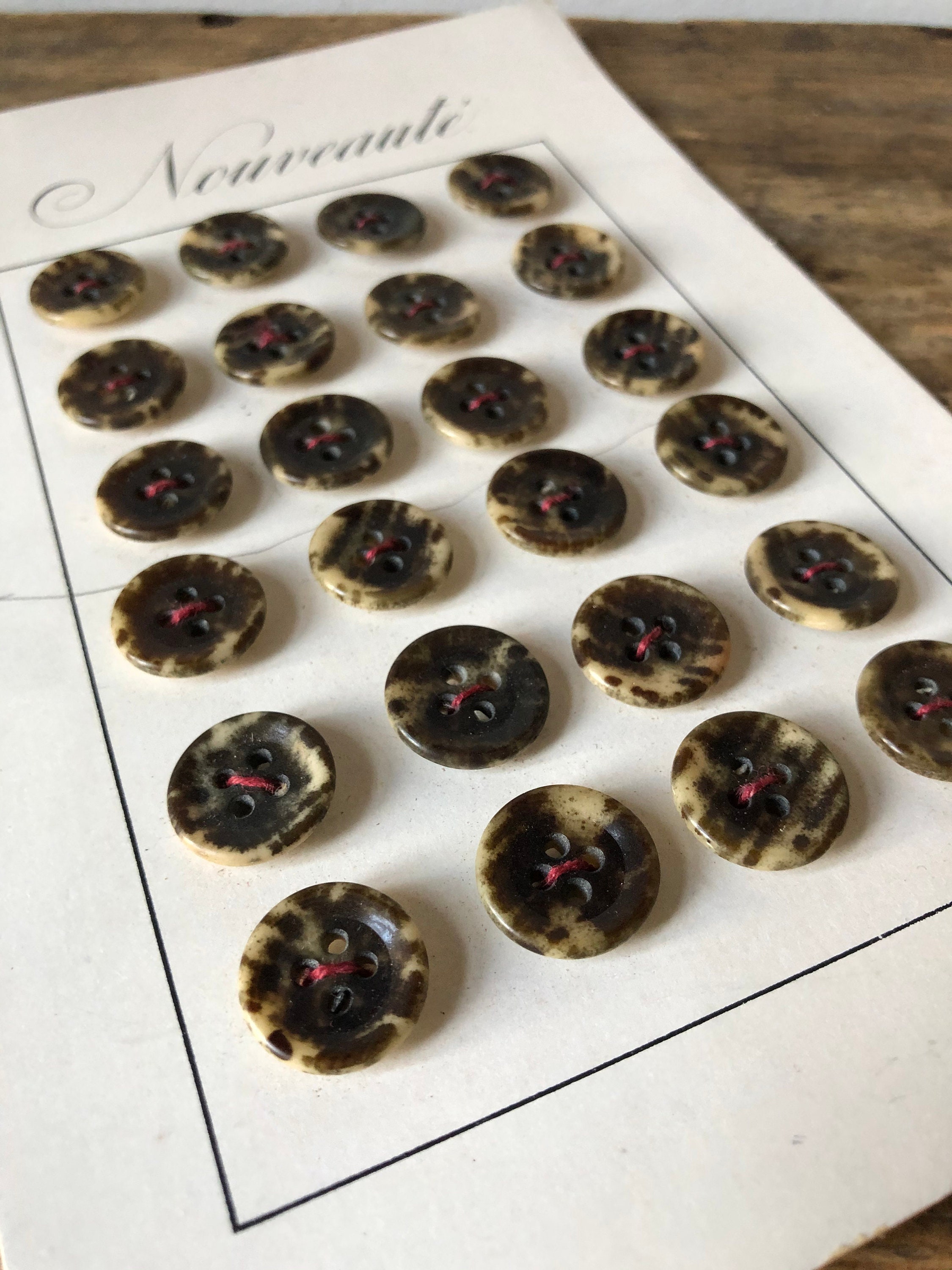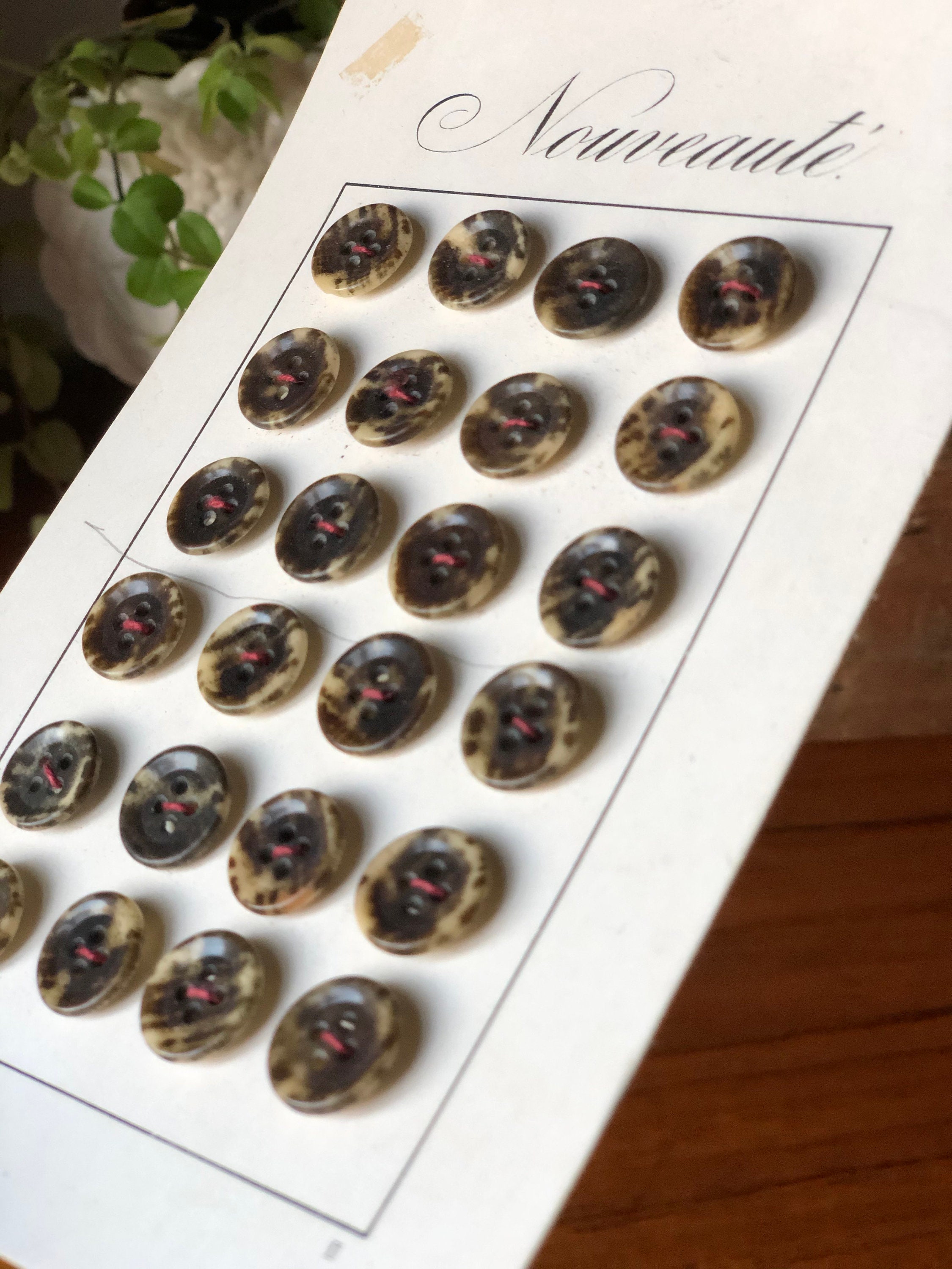This is a set of 24 never used 1940s buttons from Paris France still on original card. They have a beautiful speckled pattern.