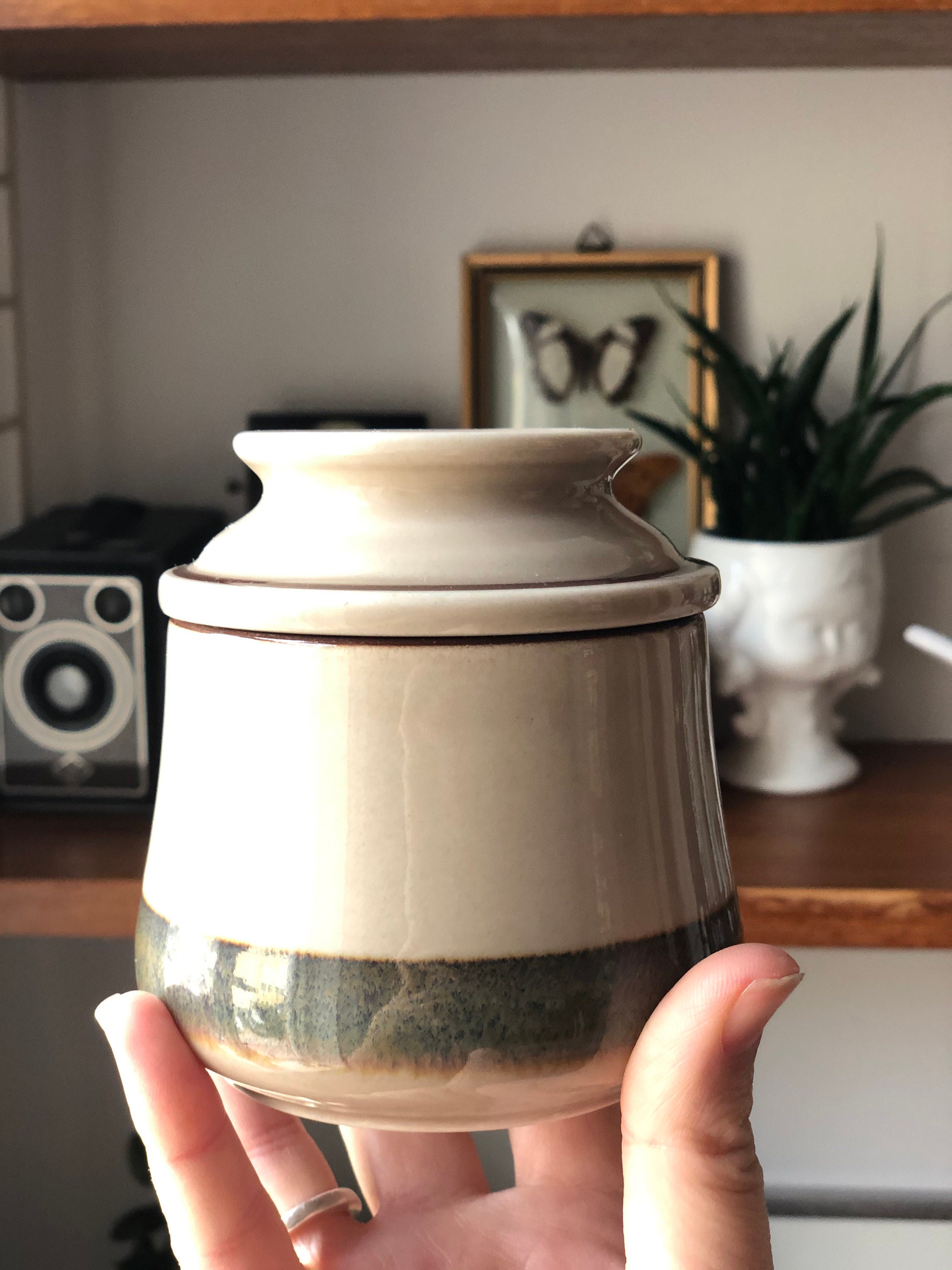 This will complete a set or can be used as an additional condiment jar for a bohemian earthy colored tablescape.