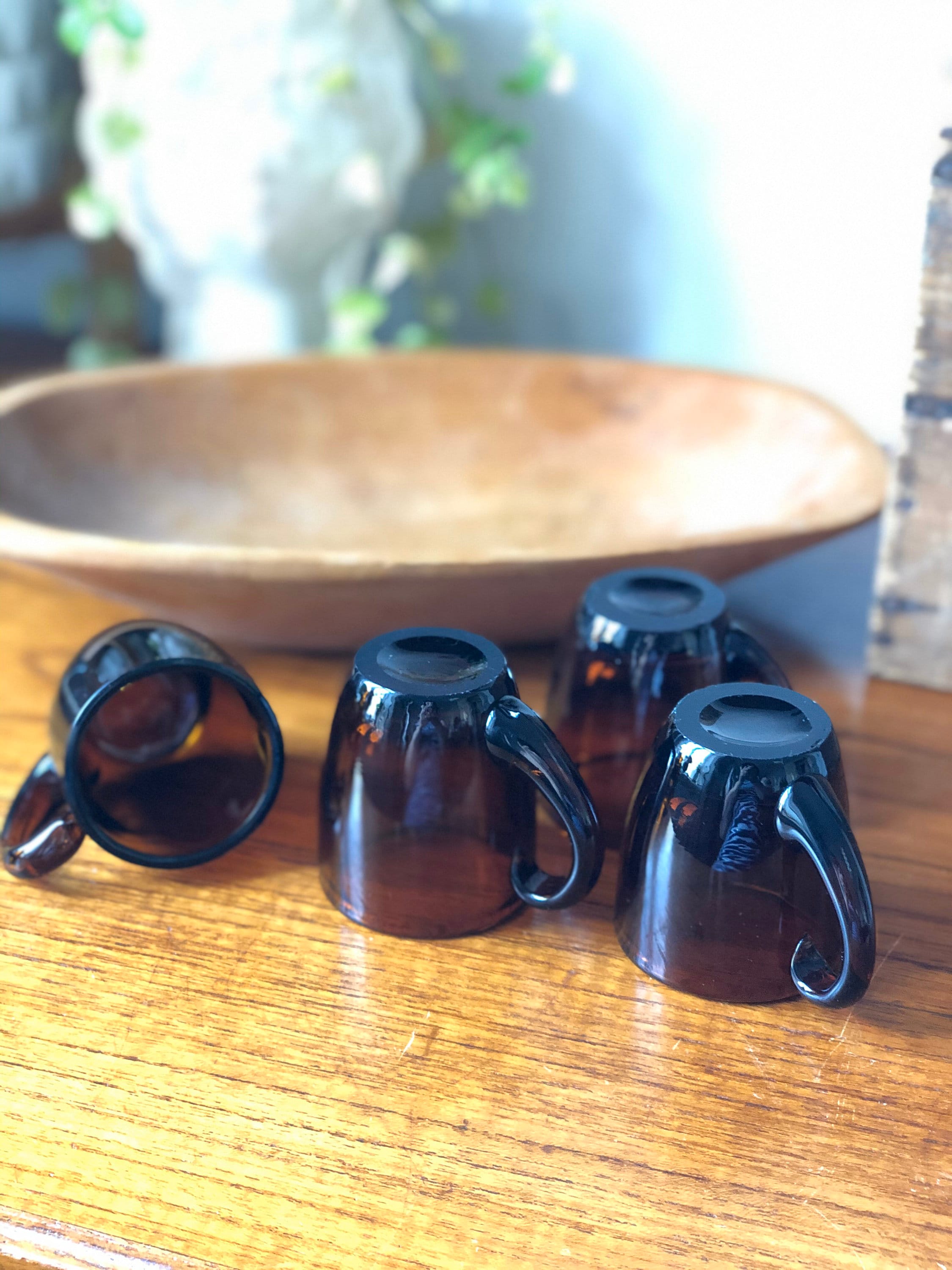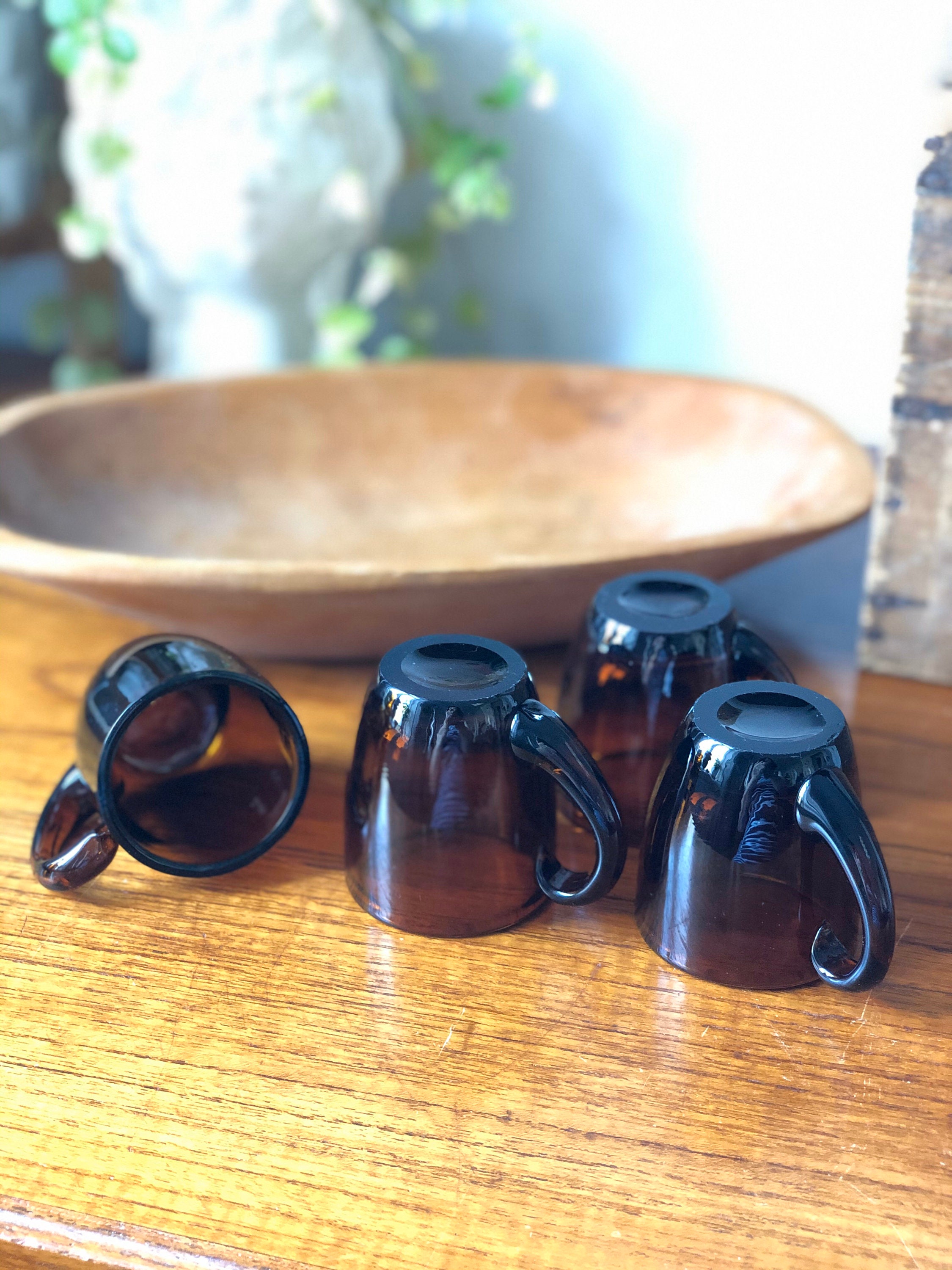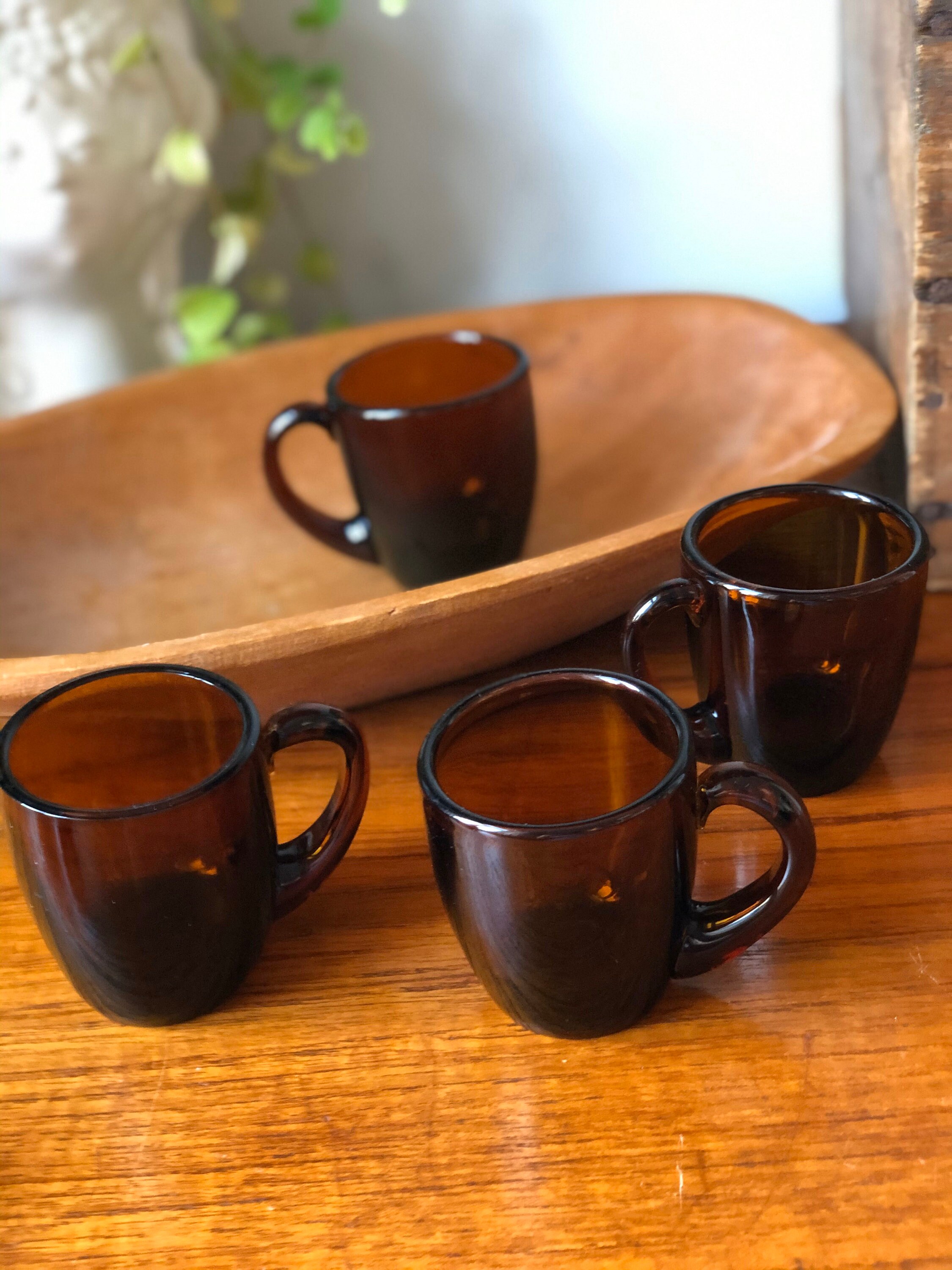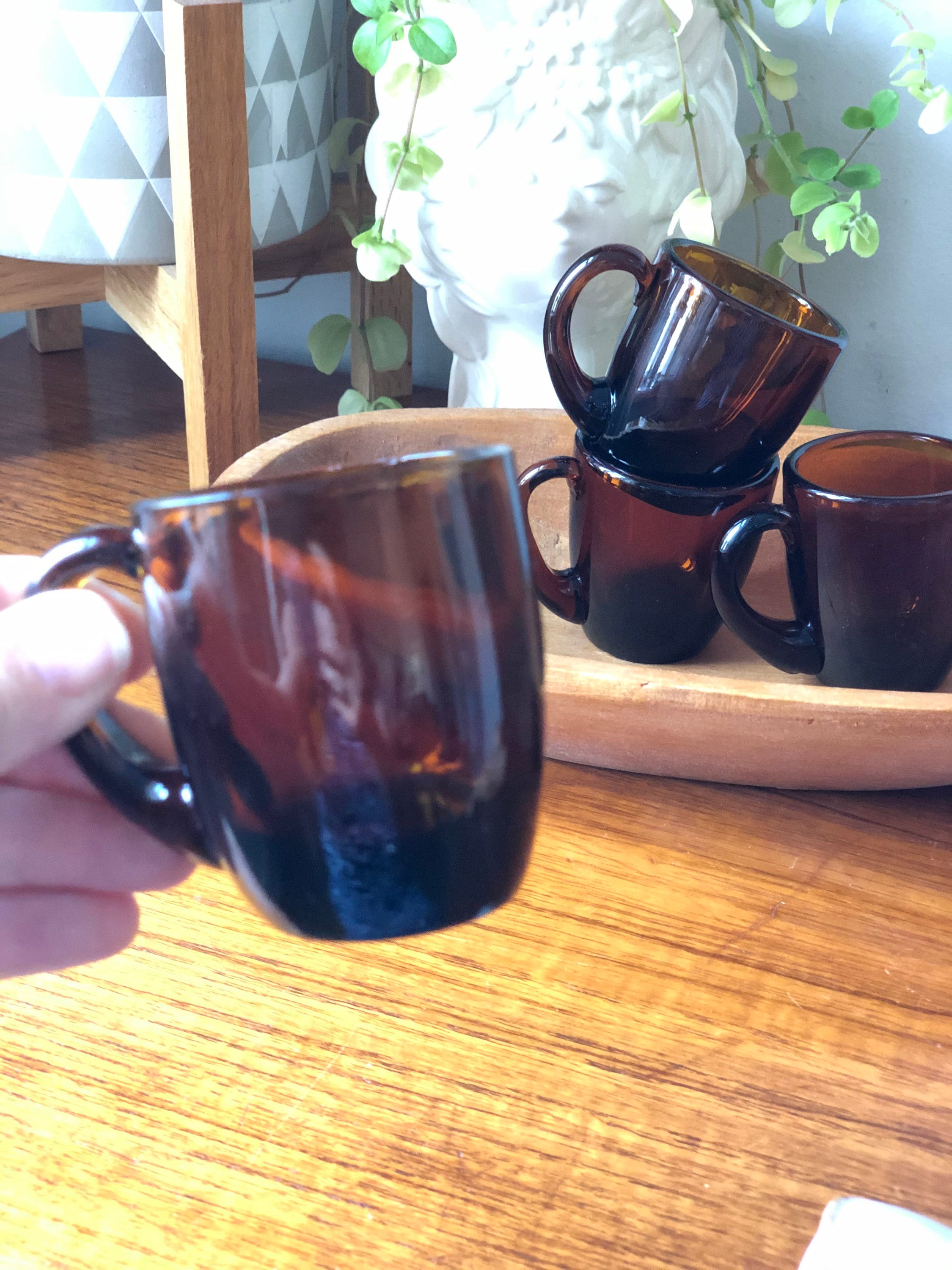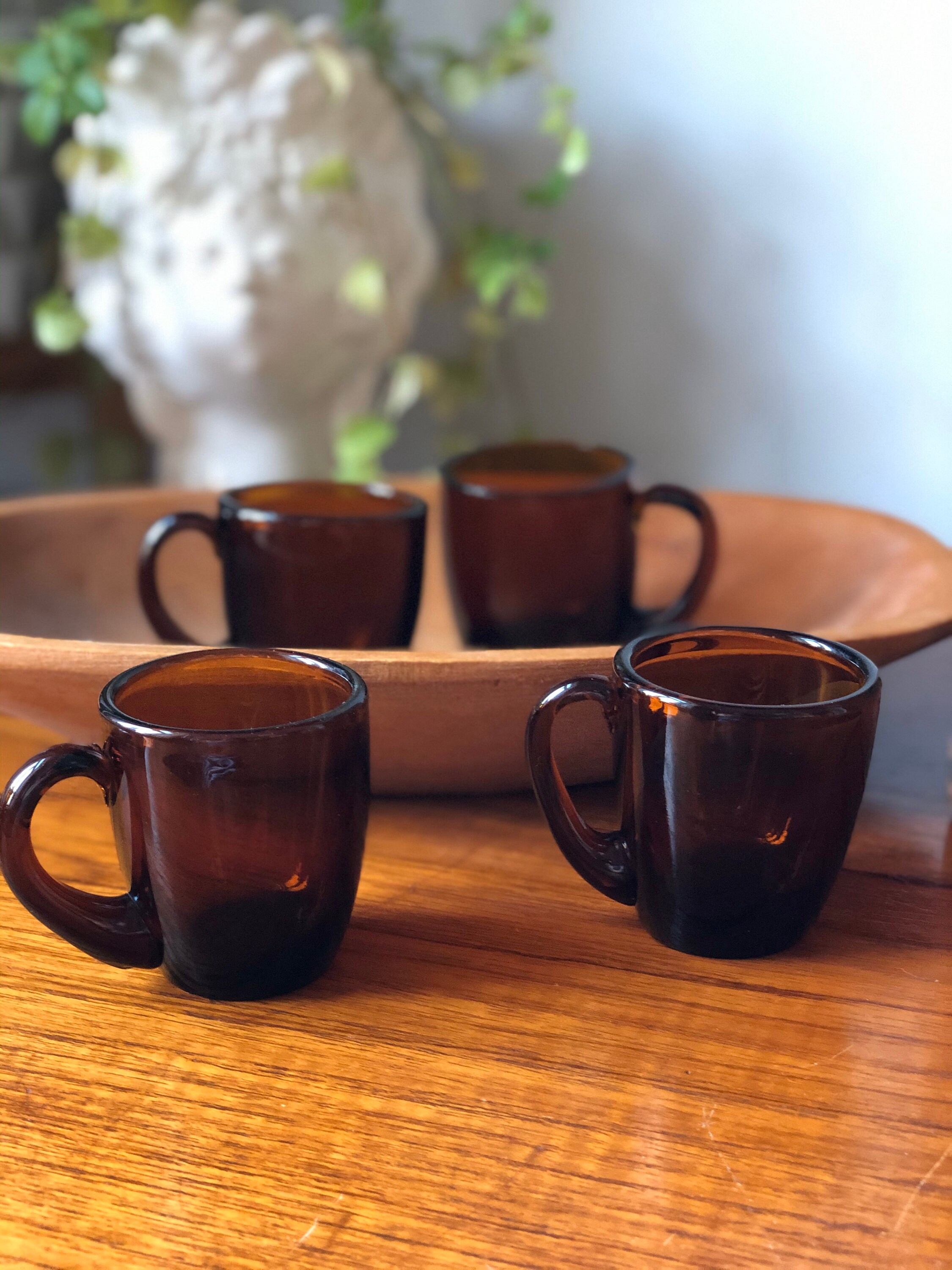 They are handblown amber glass with a handle. These glasses are a great example of Scandinavian quality glass. They are so retro and will look great on display as well as when you are using them.