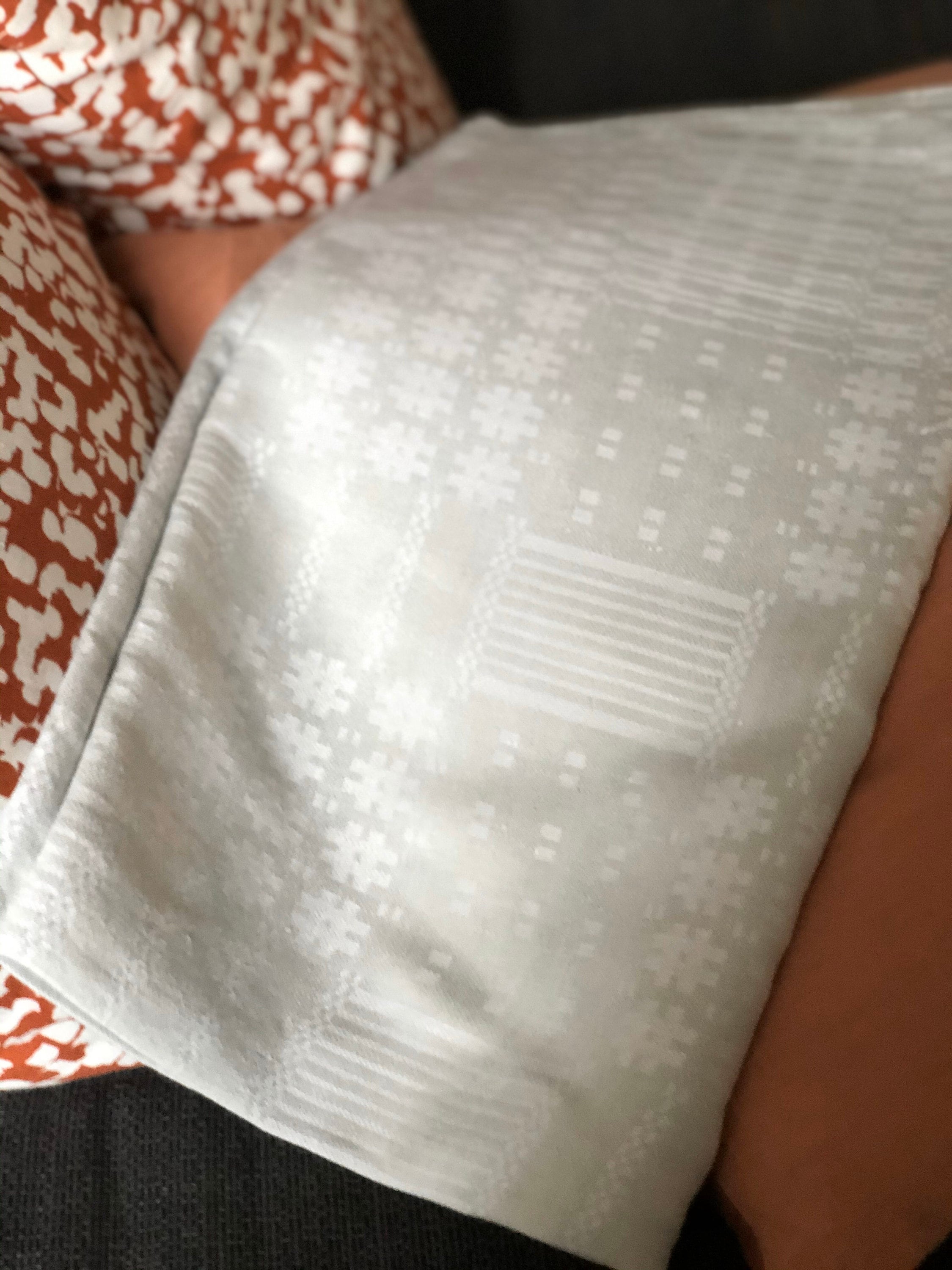 Vintage/woven/Scandinavian/linen/tablecloth white detail/style/natural fibers/hygge