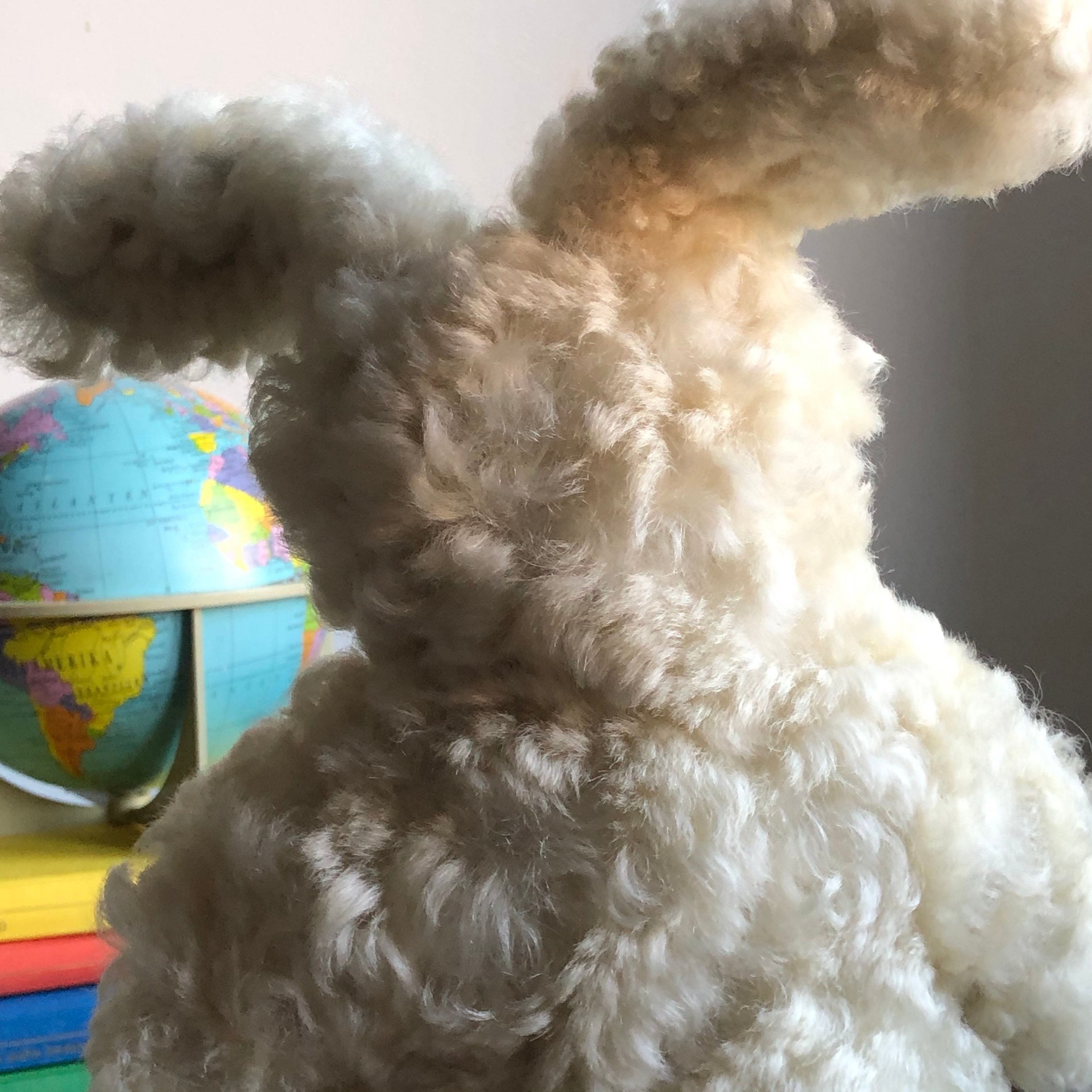 This is a lovely traditional sheep skin hand made stuffed toy rabbit. It has been impeccably cared for and is in excellent vintage condition.