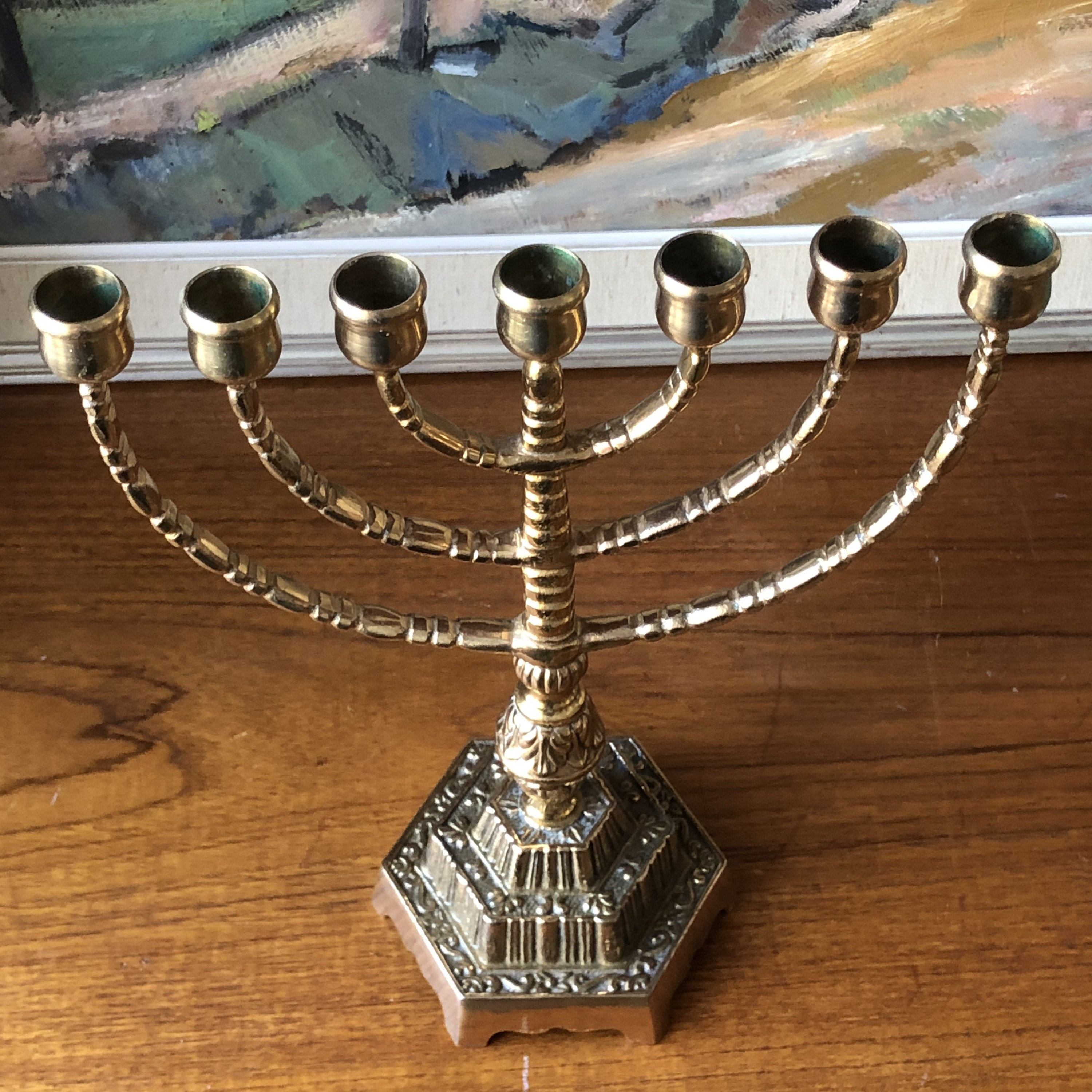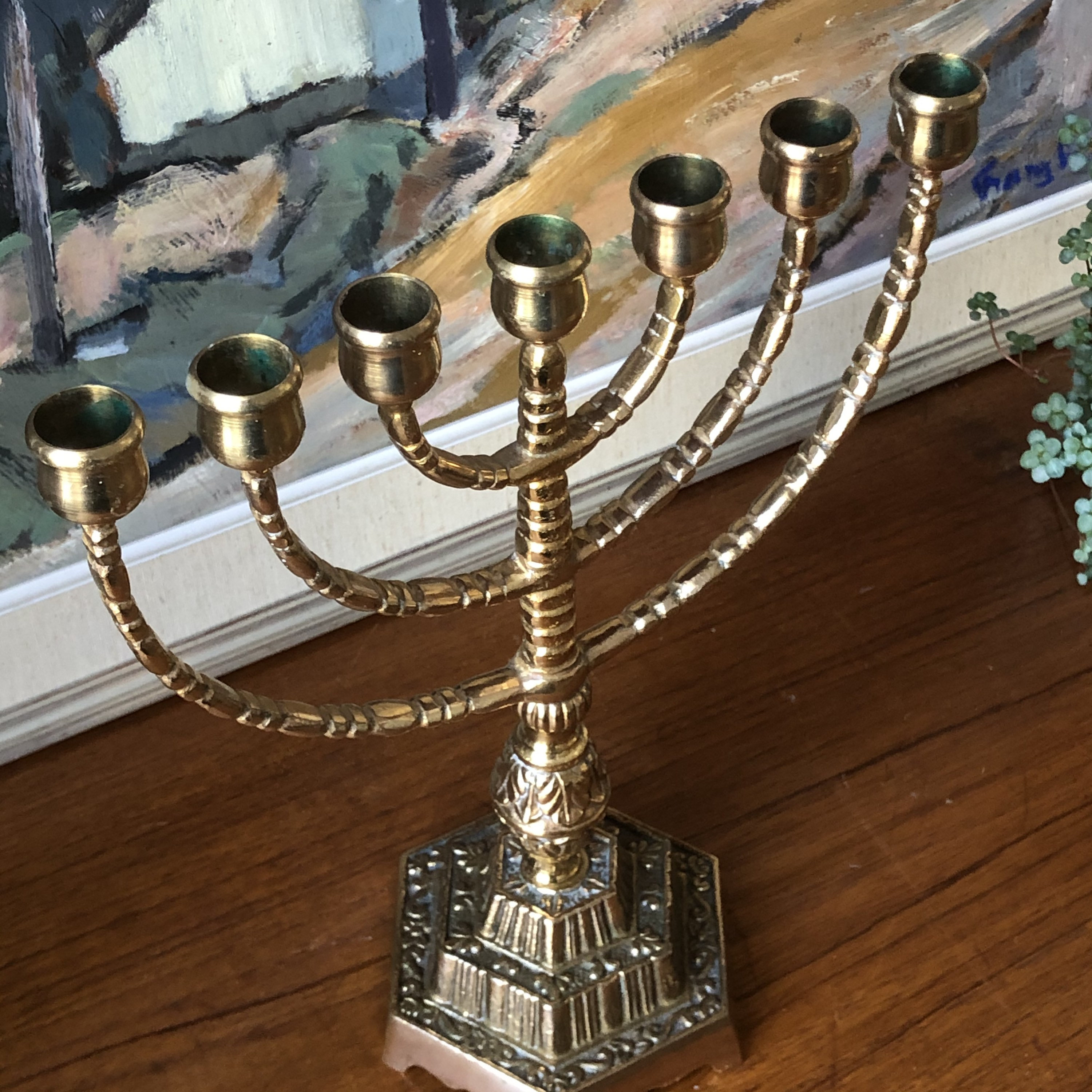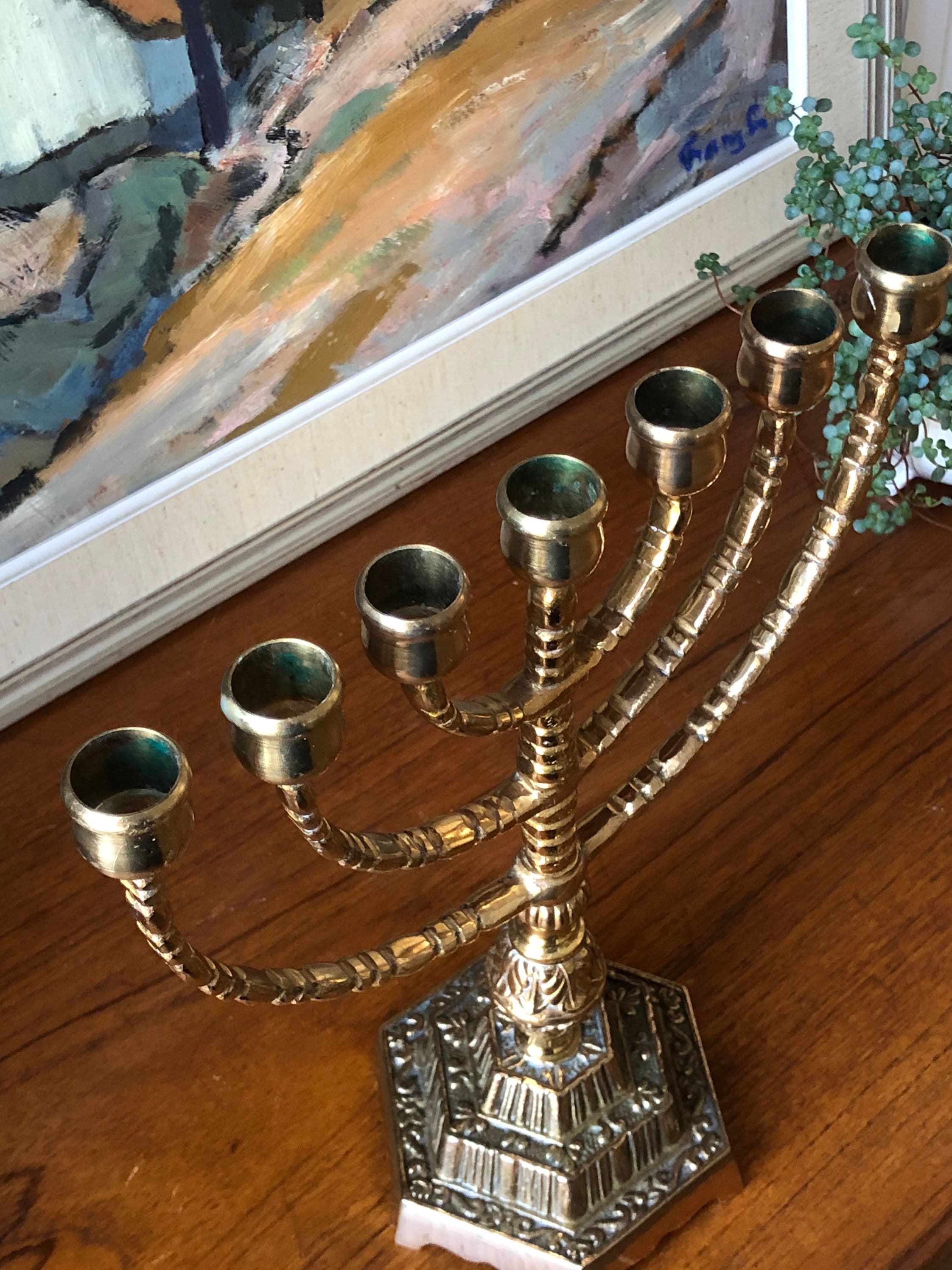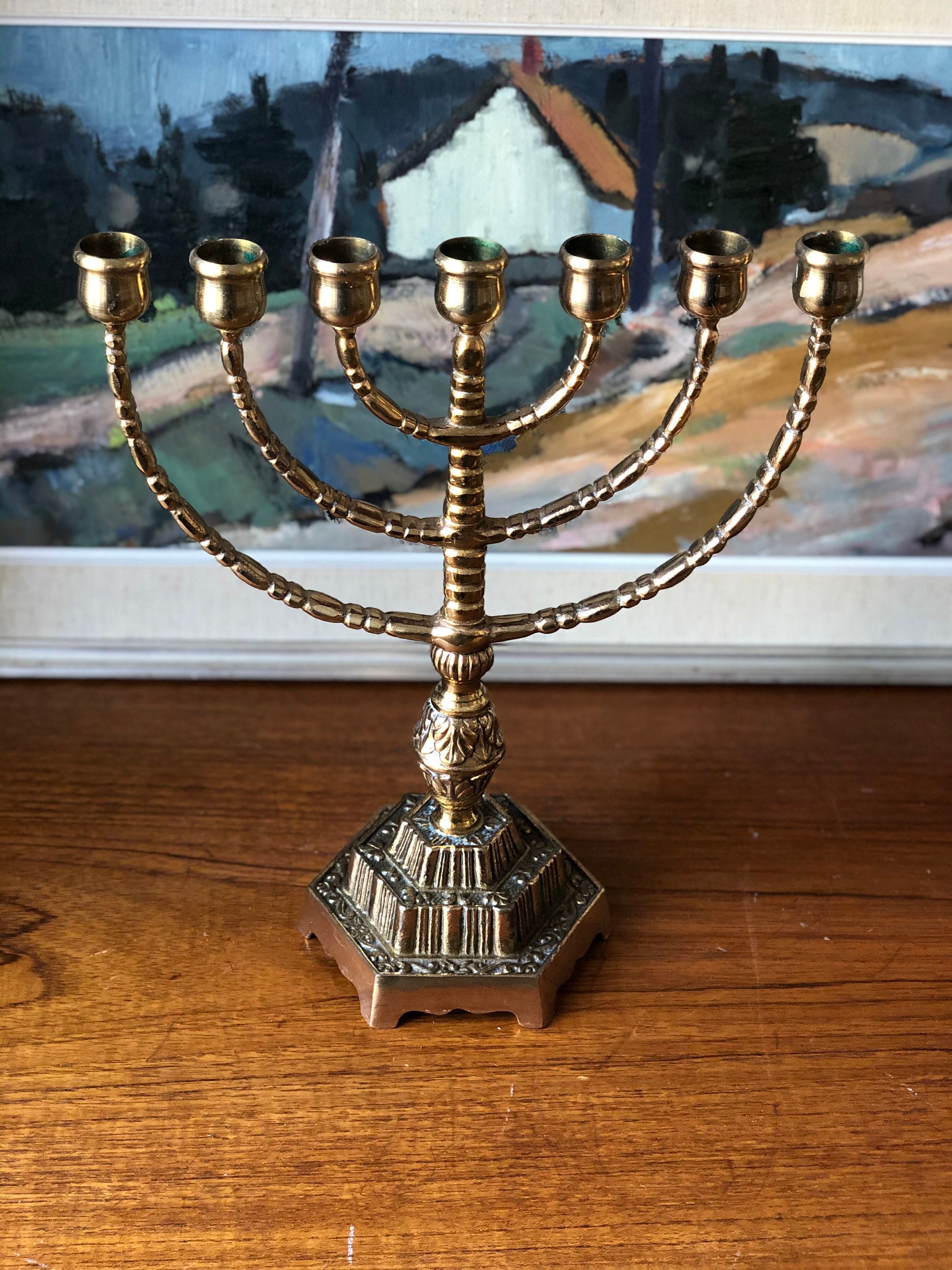 This is a heavy older vintage bronze menorah with beautiful intricate detail on all sides. In excellent vintage condition with a lovely patina.