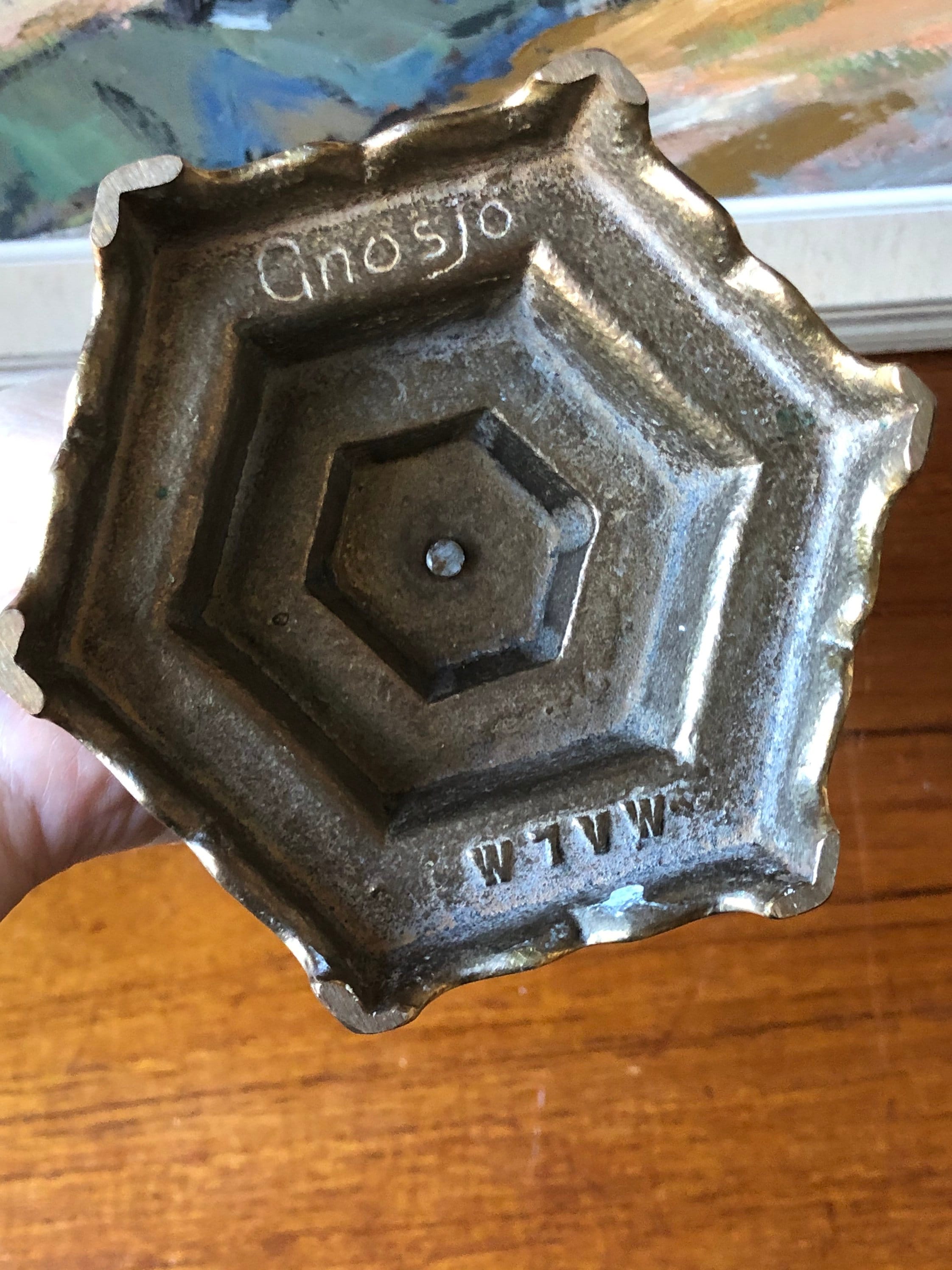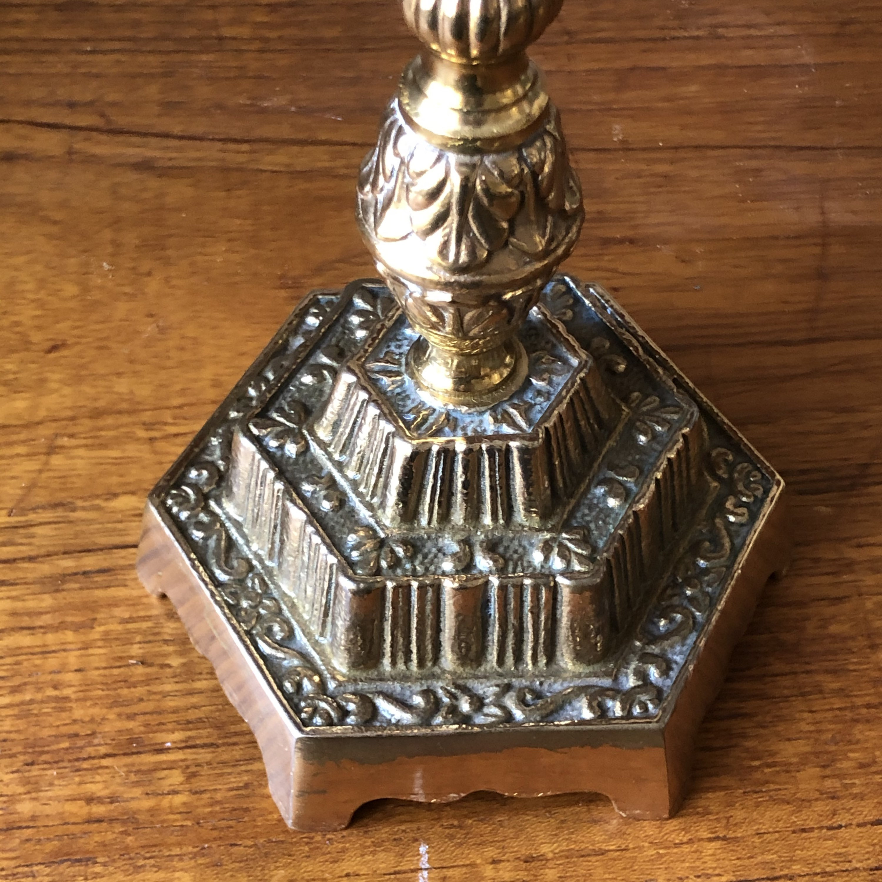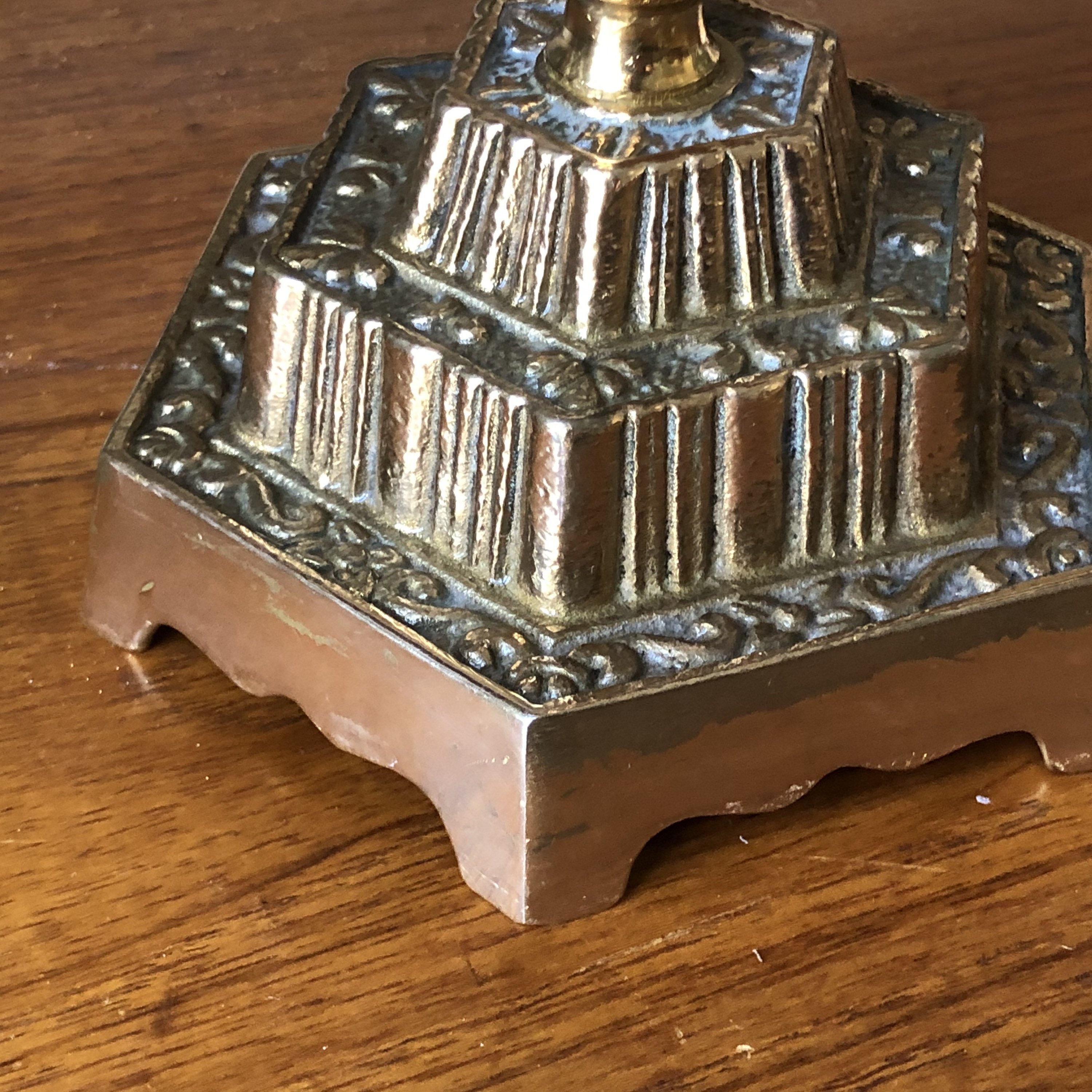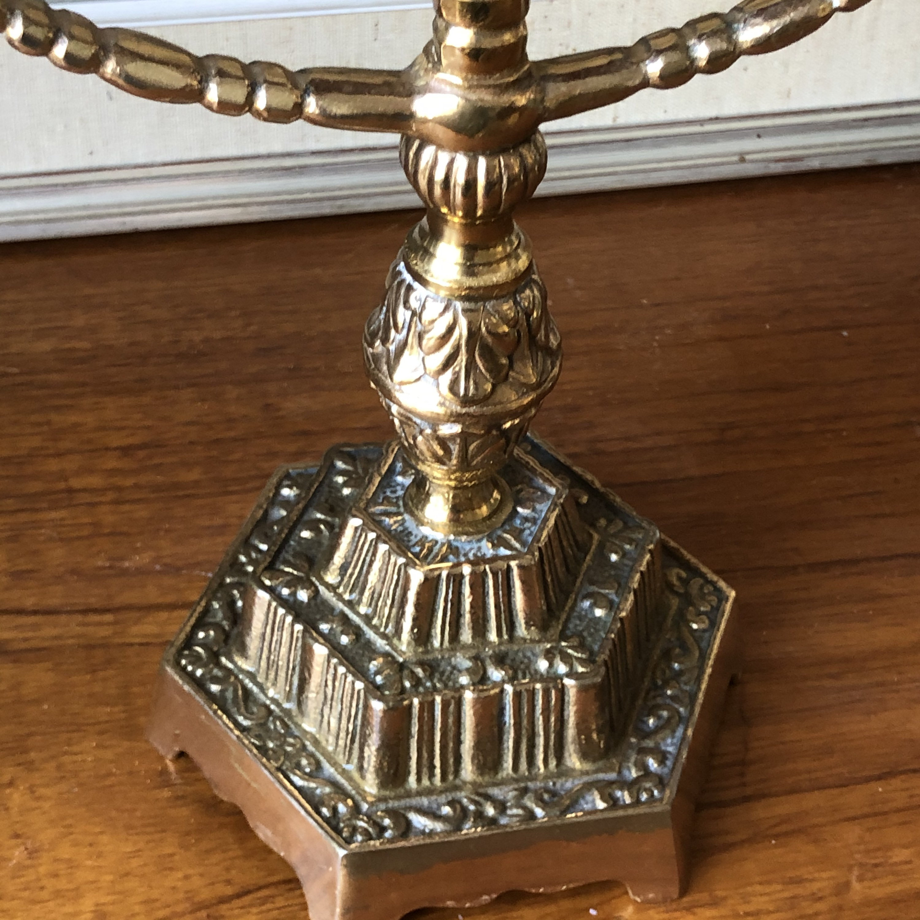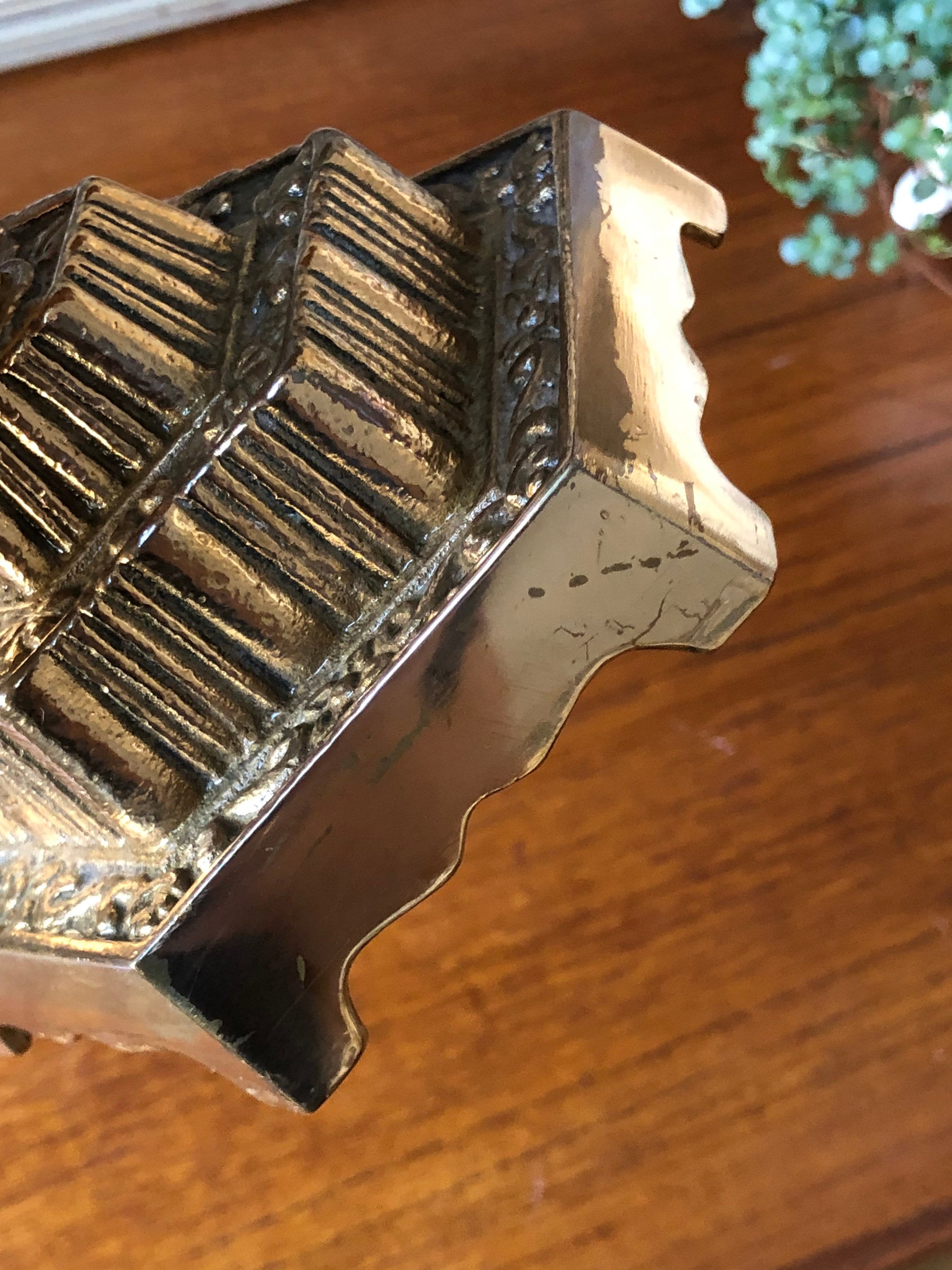 This is a heavy older vintage bronze menorah with beautiful intricate detail on all sides. In excellent vintage condition with a lovely patina.