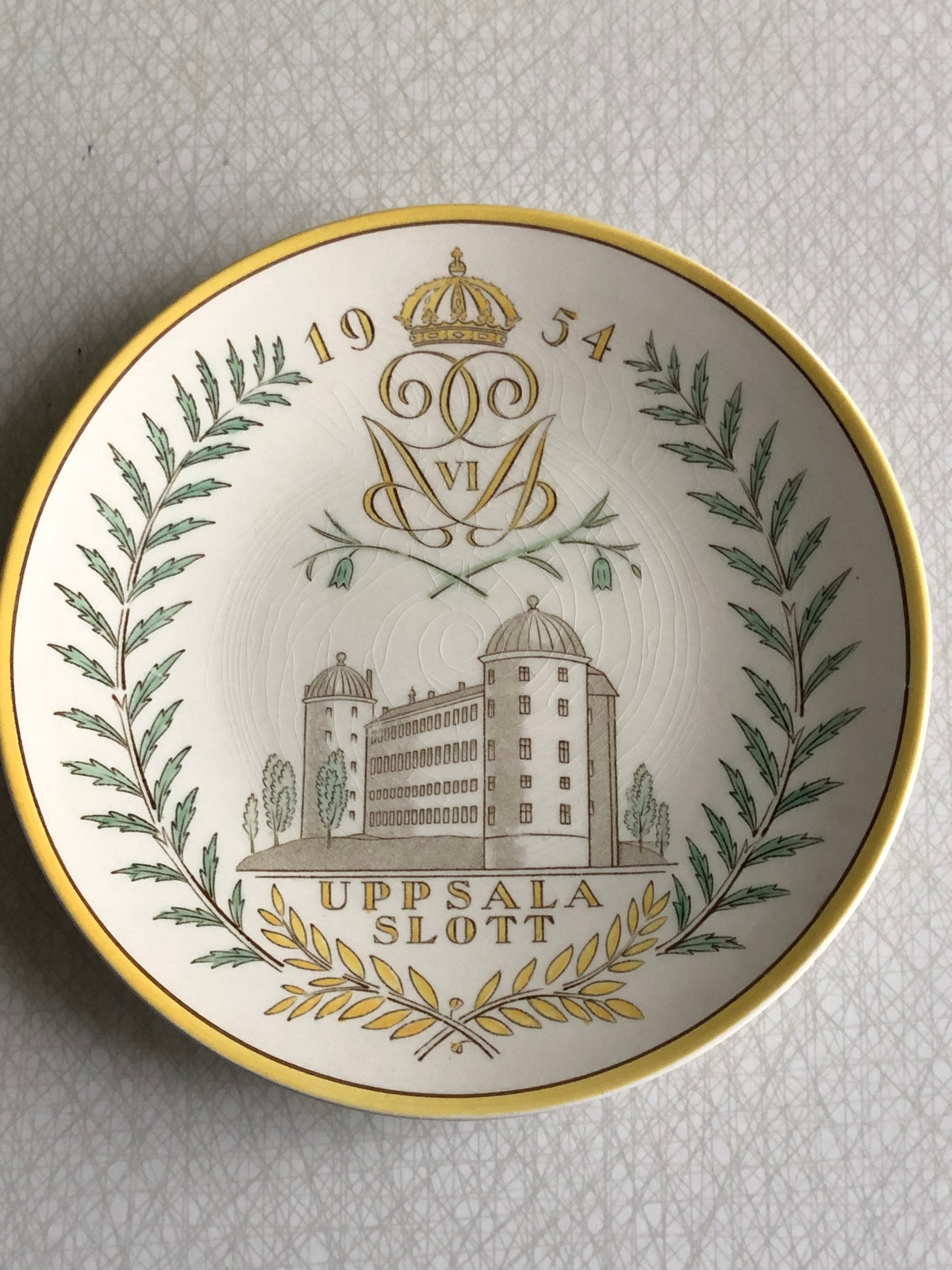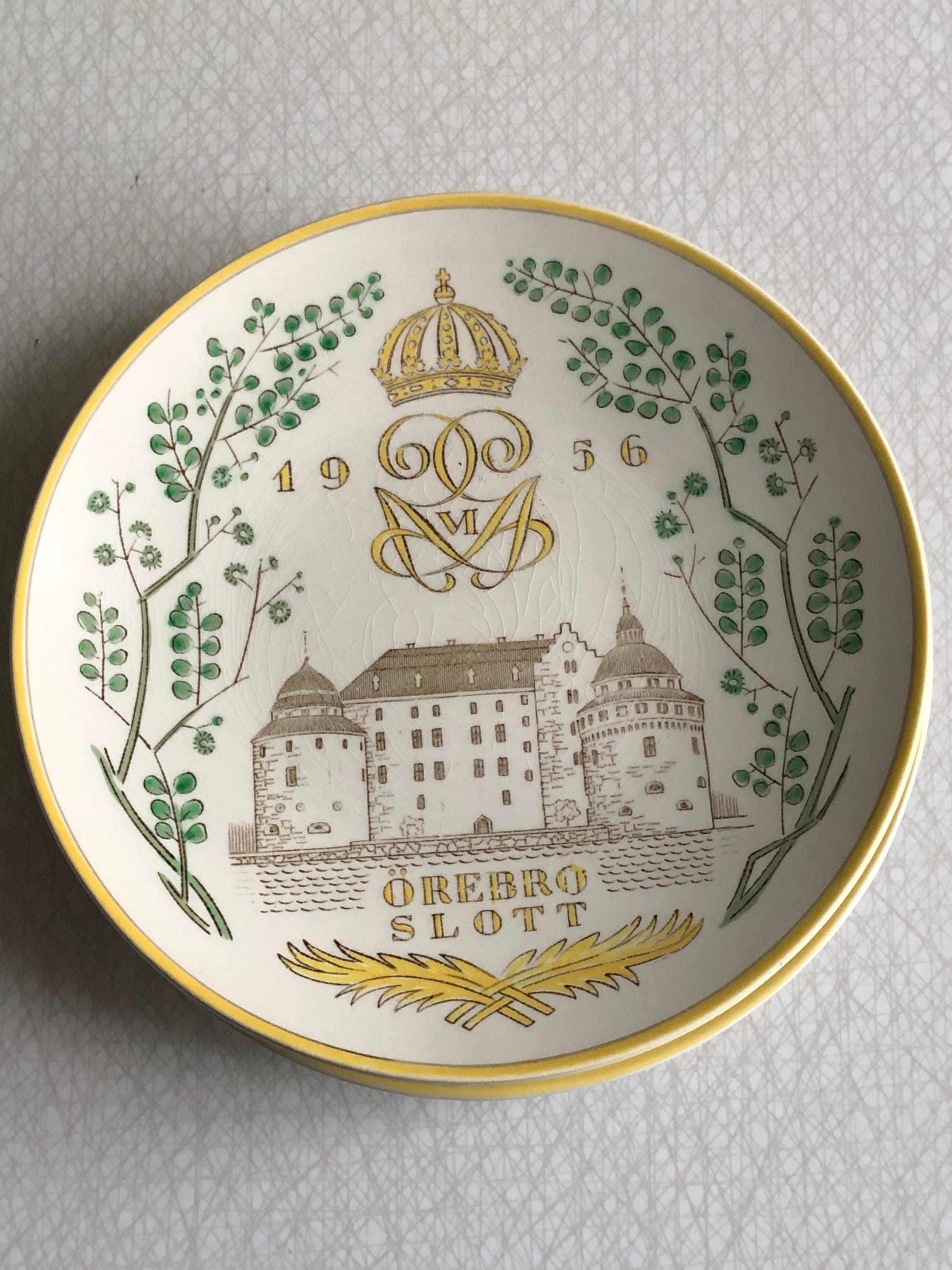 I am selling individual Swedish commemorative wall plates from the 1950s. These Vintage plates feature castles from around Sweden designed for Gelfe ceramics. They are beautifully designed with lovely green and yellow colors. In great vintage condition, no chips, cracks but crazing due to age.